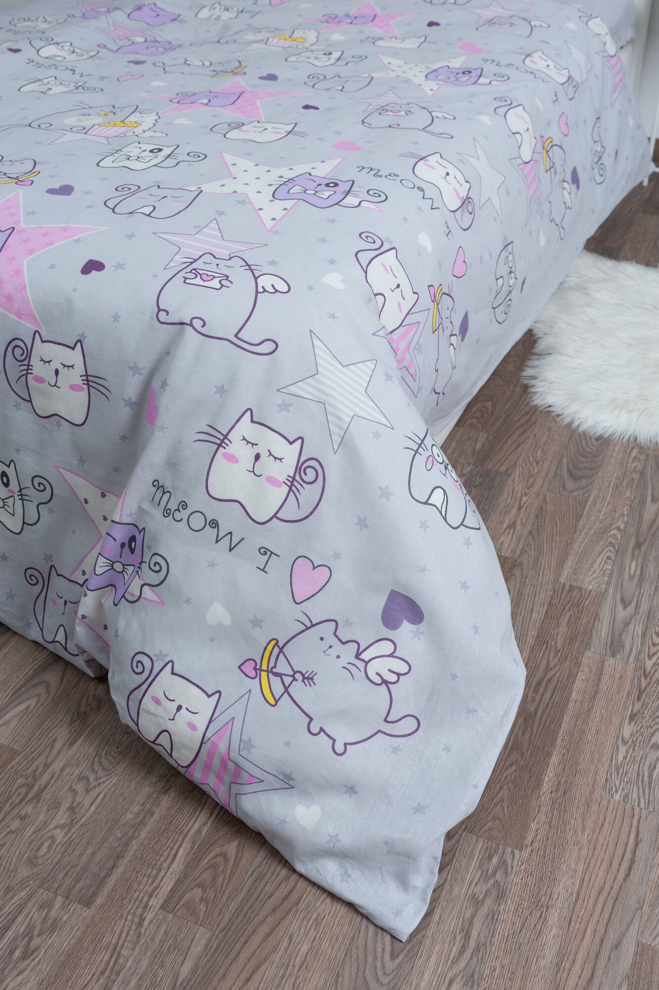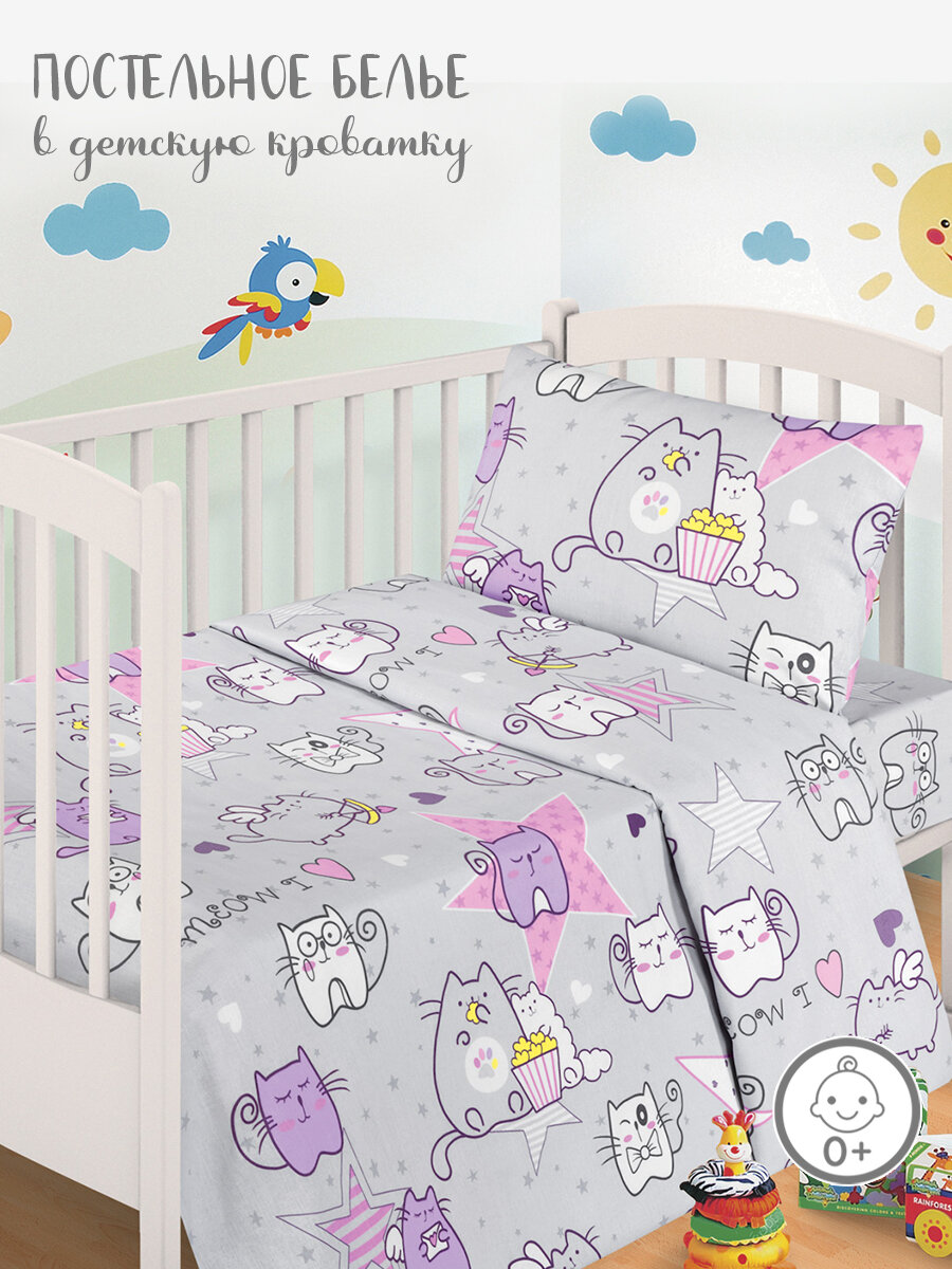 Постельное белье в детскую кроватку для малышей Миланика 100% хлопок Мяу интересное: