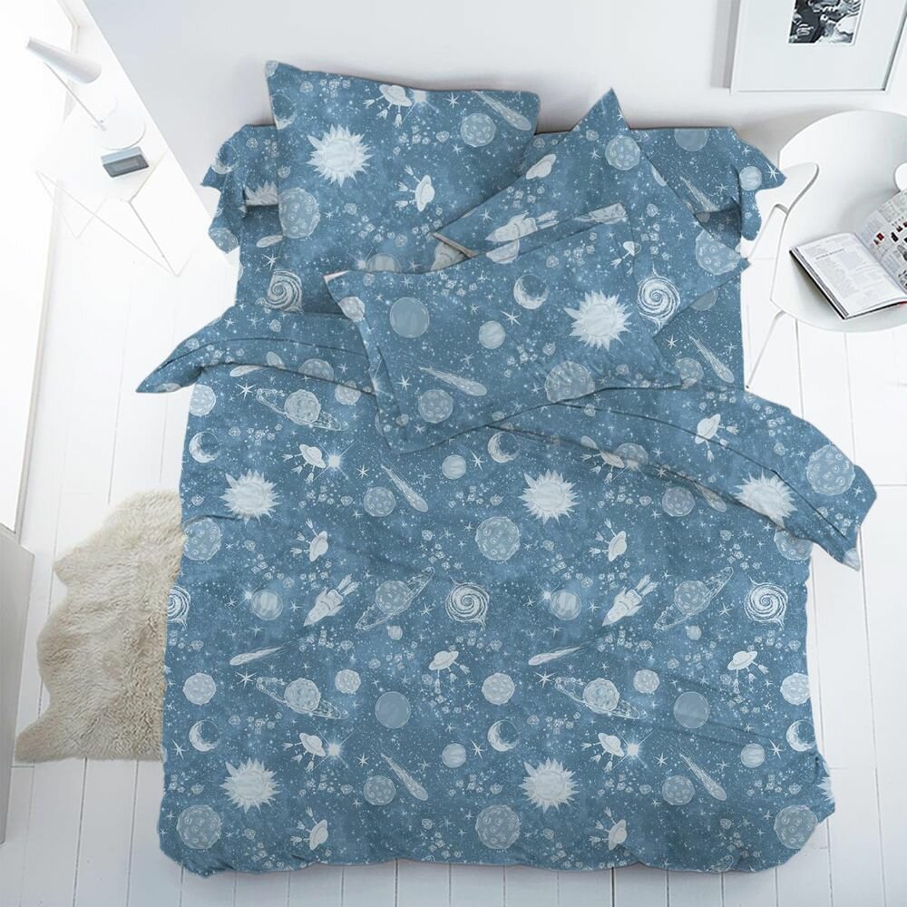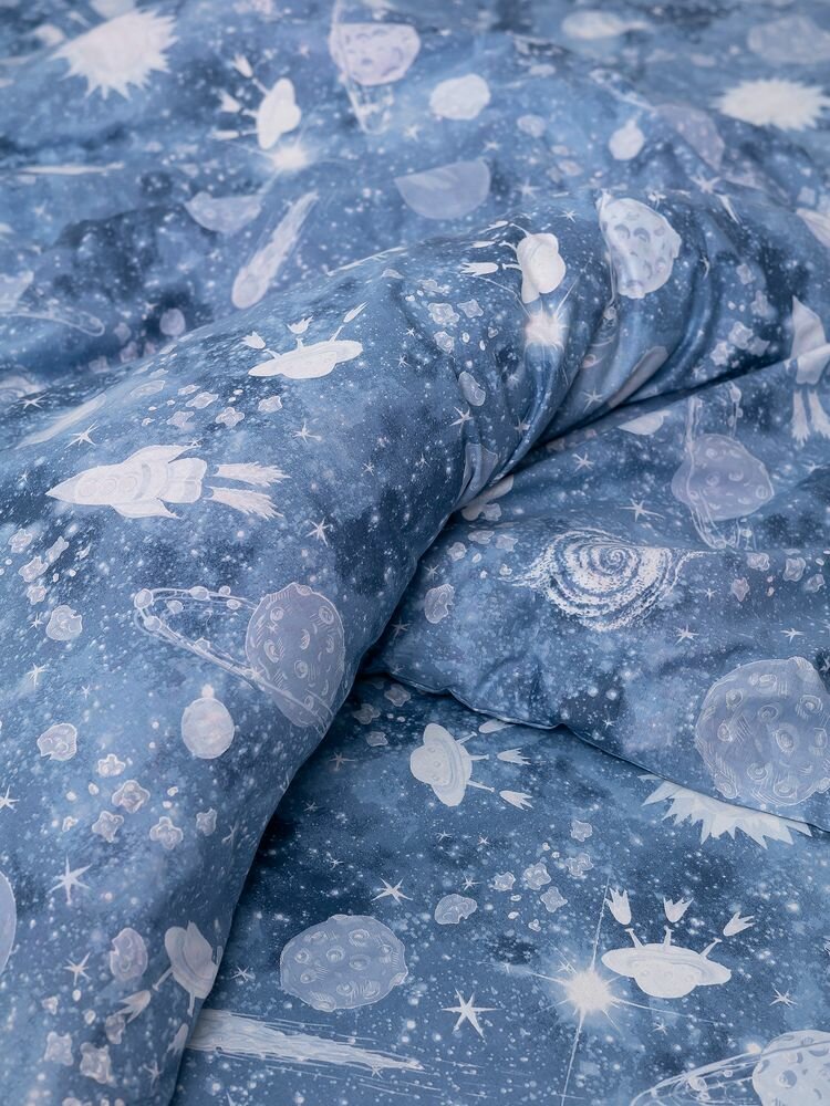 Пододеяльник 112*147 см в детскую кроватку, перкаль, детская расцветка (Космос) интересное: