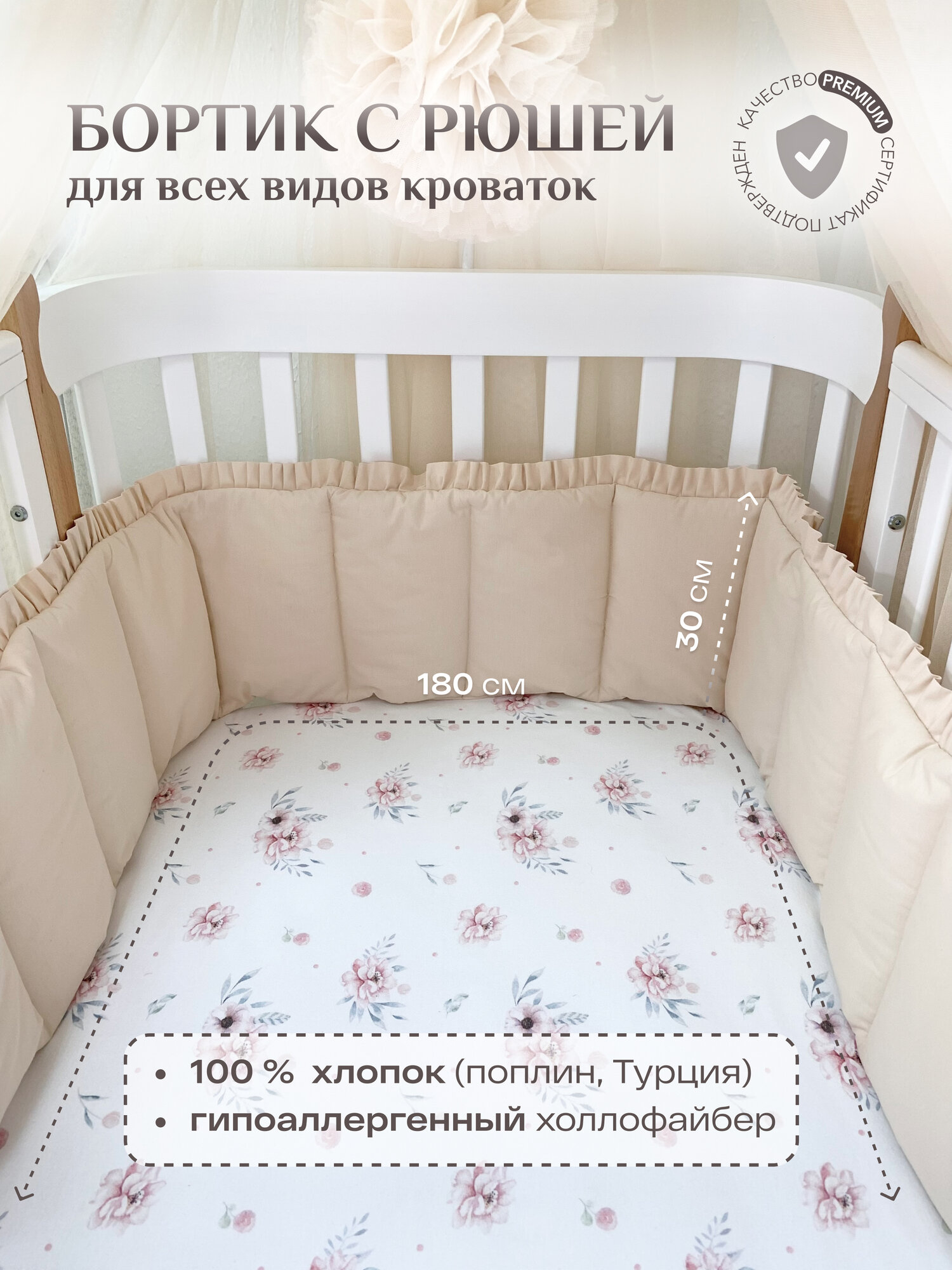 Бортик с рюшей в кроватку для новорожденных, цвет - светло-бежевый интересное: