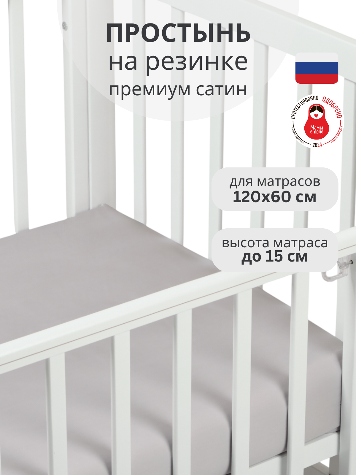 Простынь Mr Sandman на резинке 120х60 для новорожденных в кроватку, серый, сатин премиум интересное: