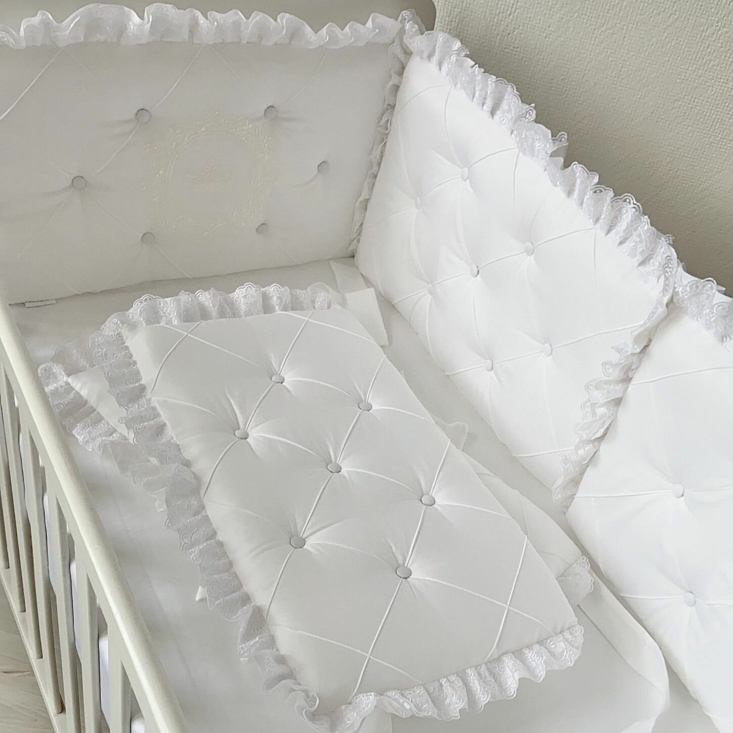 Купить Бортики в кроватку для новорожденного "Облако", белоснежный, 6 подушек, в кроватку 120*60 см,125*65 125*75, сатин KrisFi