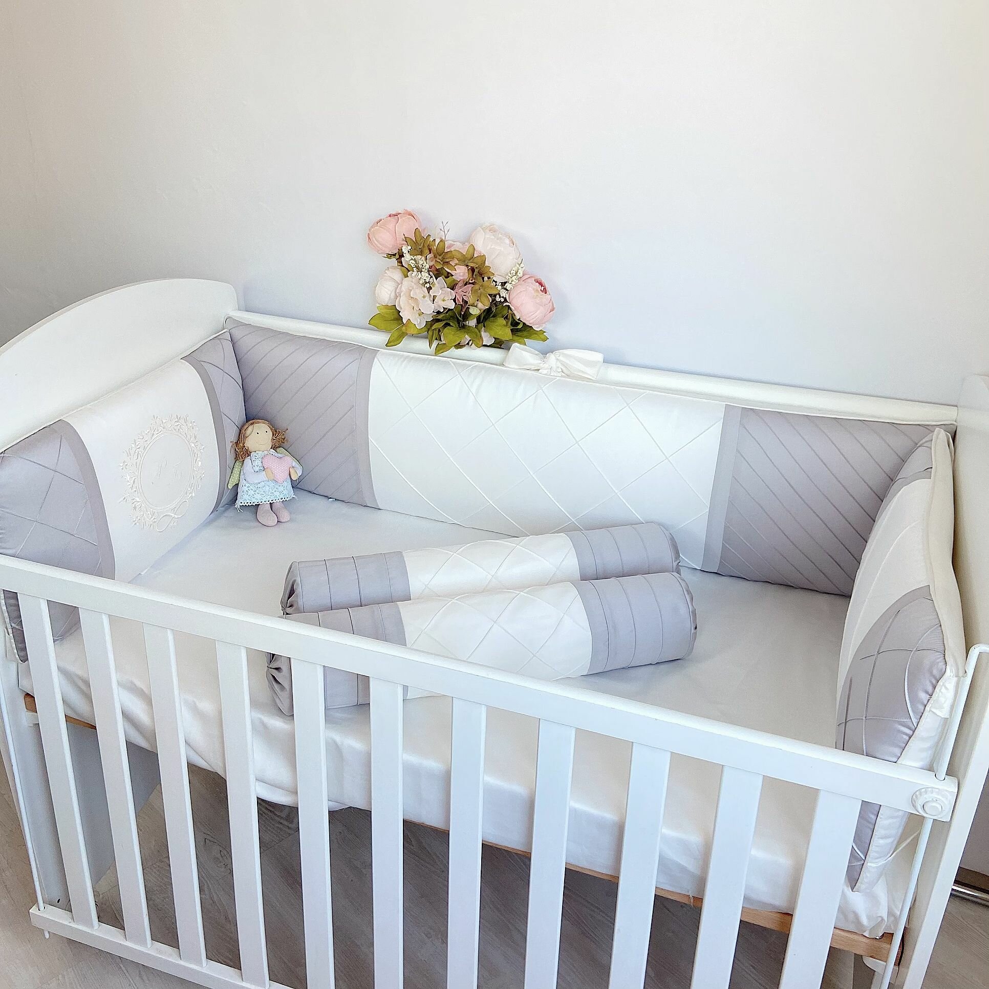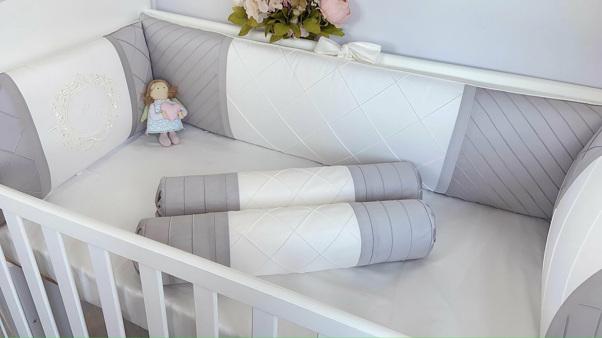Купить Бортики в кроватку для новорожденных "Безупречность" с валиками, сатин, в кроватку 120*60 см или 125*65 см, KrisFi