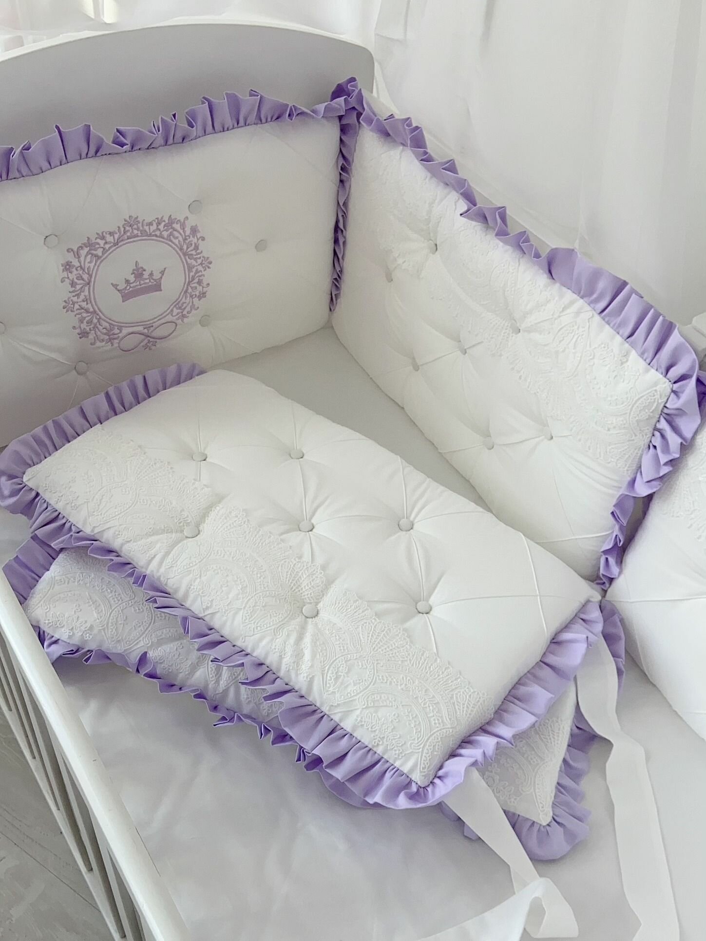 Купить Бортики в кроватку для новорожденных "Облако", сиреневый, 6 подушек, в кроватку 120*60 см,125*65 125*75, сатин KrisFi