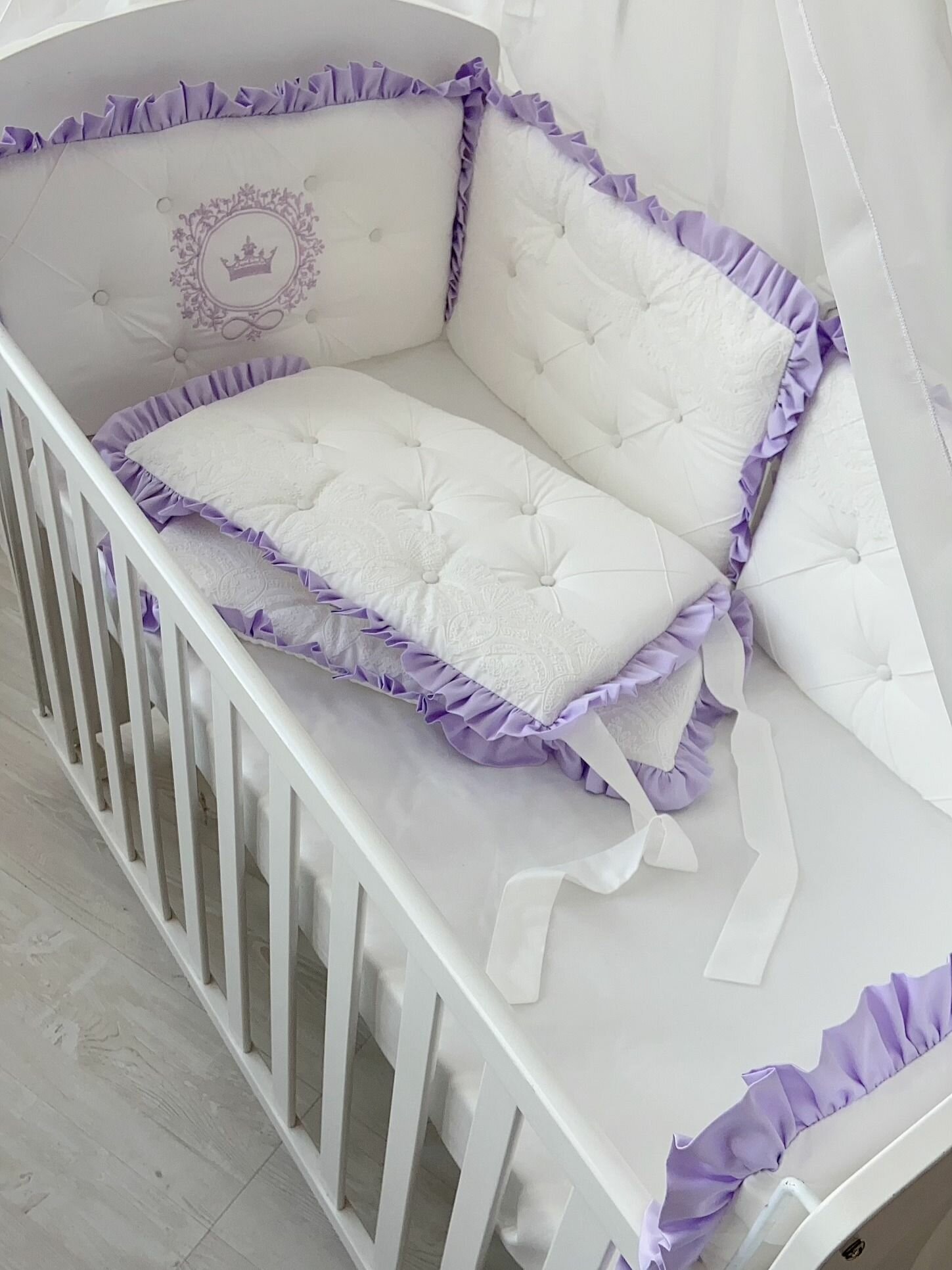 СохранитьБортики в кроватку для новорожденных "Облако", сиреневый, 6 подушек, в кроватку 120*60 см,125*65 125*75, сатин KrisFi интересное:
