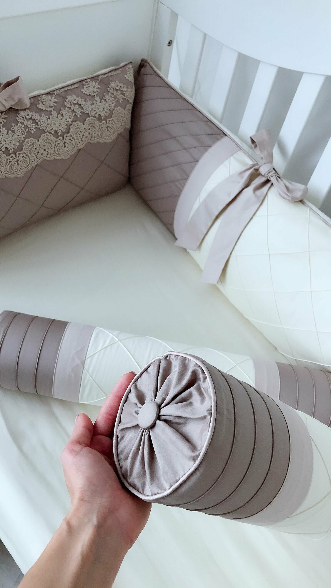 Бортики в кроватку для новорожденного "Облако", бежевый, 6 подушек, в кроватку 120*60 см, 125*65 или 125*75 сатин KrisFi