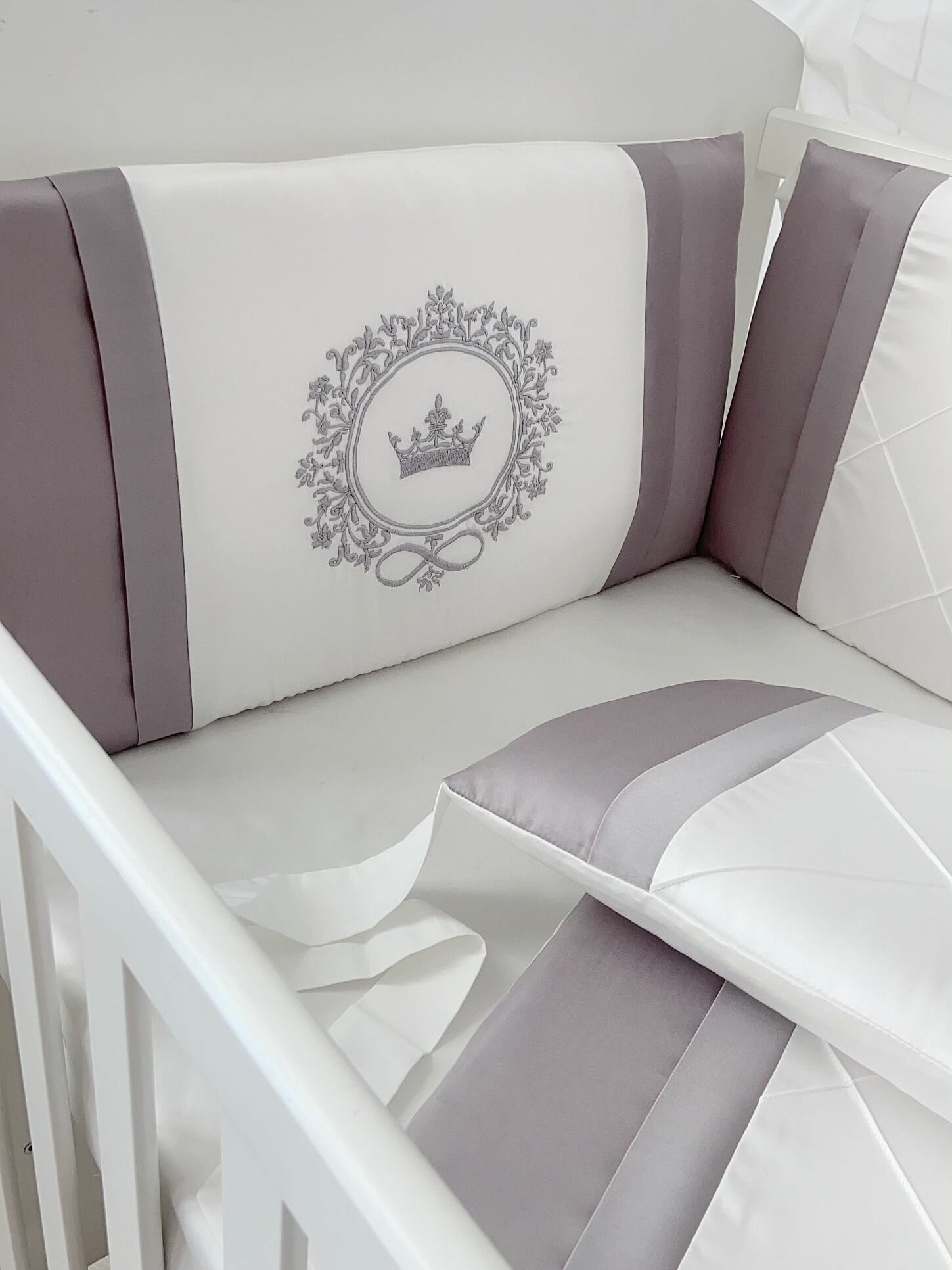 СохранитьБортики в кроватку для новорожденного "Вдохновение", серый, 6 подушек на всю кроватку 120*60 см 125*65 см, однотонный, сатин, KrisFi интересное: