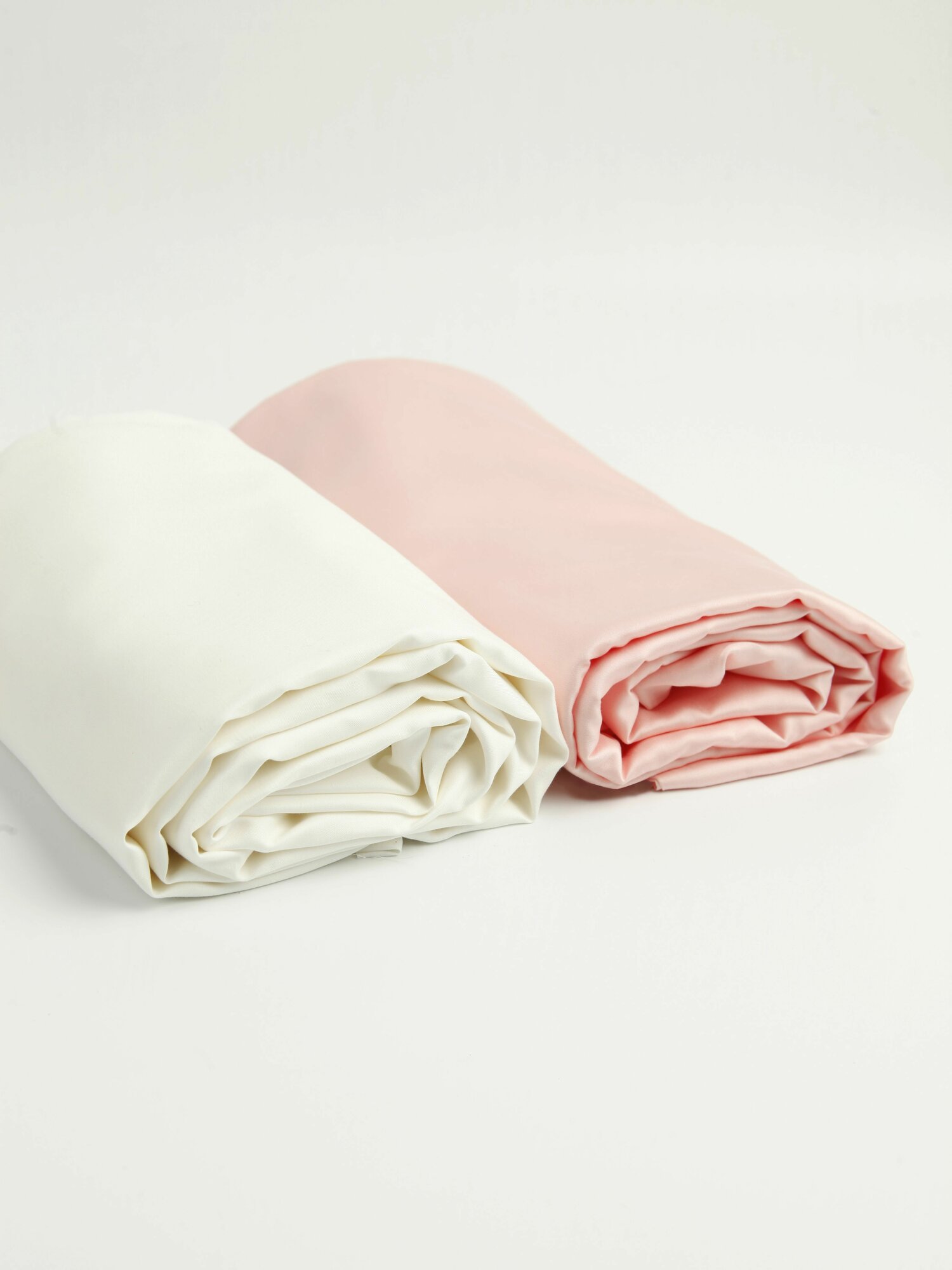 Комплект простыней для кроватки 100*70 см, 2 шт, ткань сатин, розовый и молочный