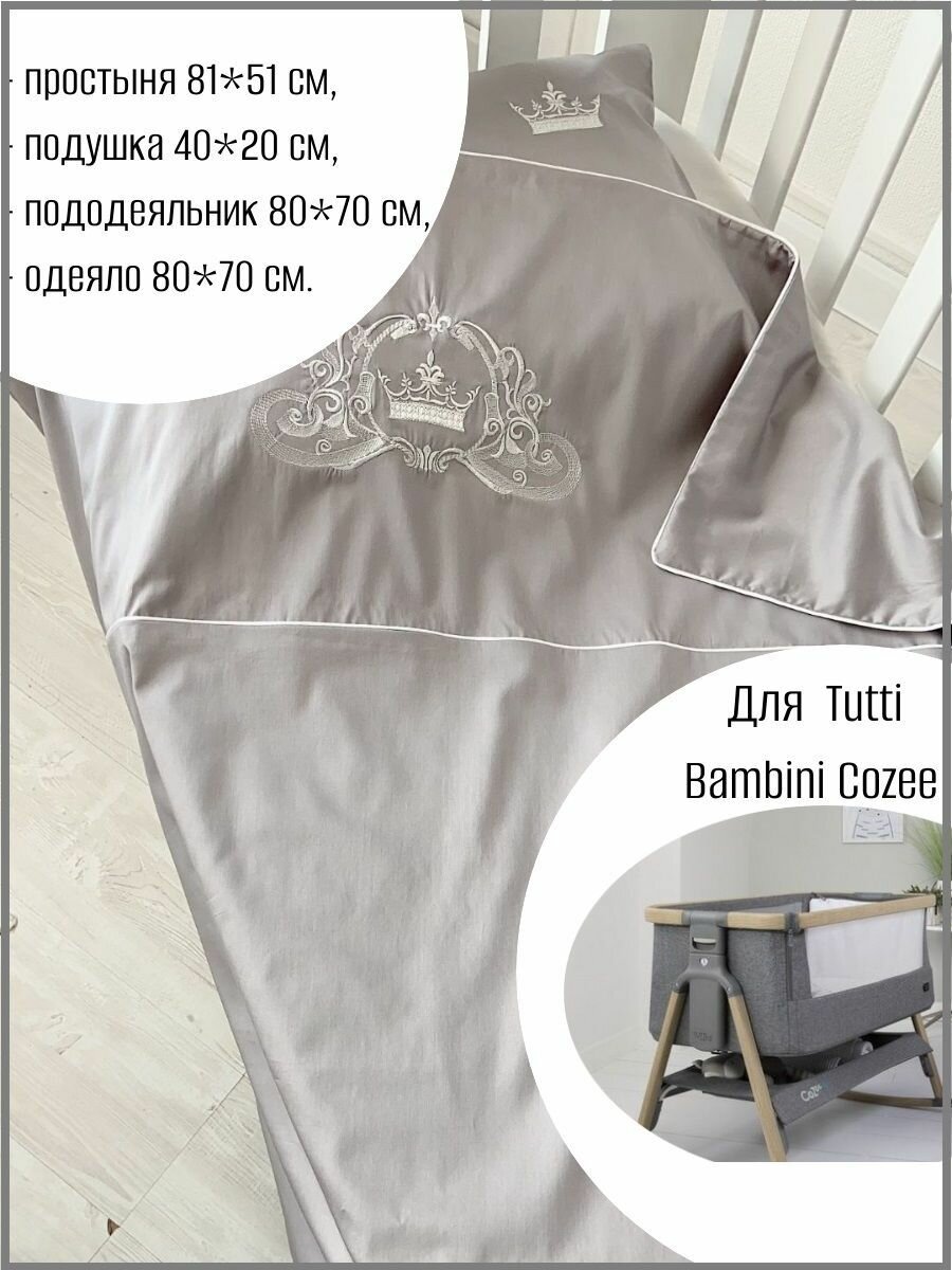 Детское постельное белье для колыбели Tutti Bambini CoZee для новорожденных, с вышивкой, однотонное, без рисунка, сатин люкс. Серый интересное: