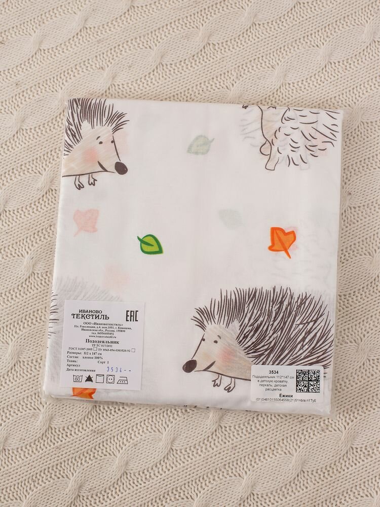 Пододеяльник 112*147 см в детскую кроватку, перкаль, детская расцветка (Ёжики) интересное: