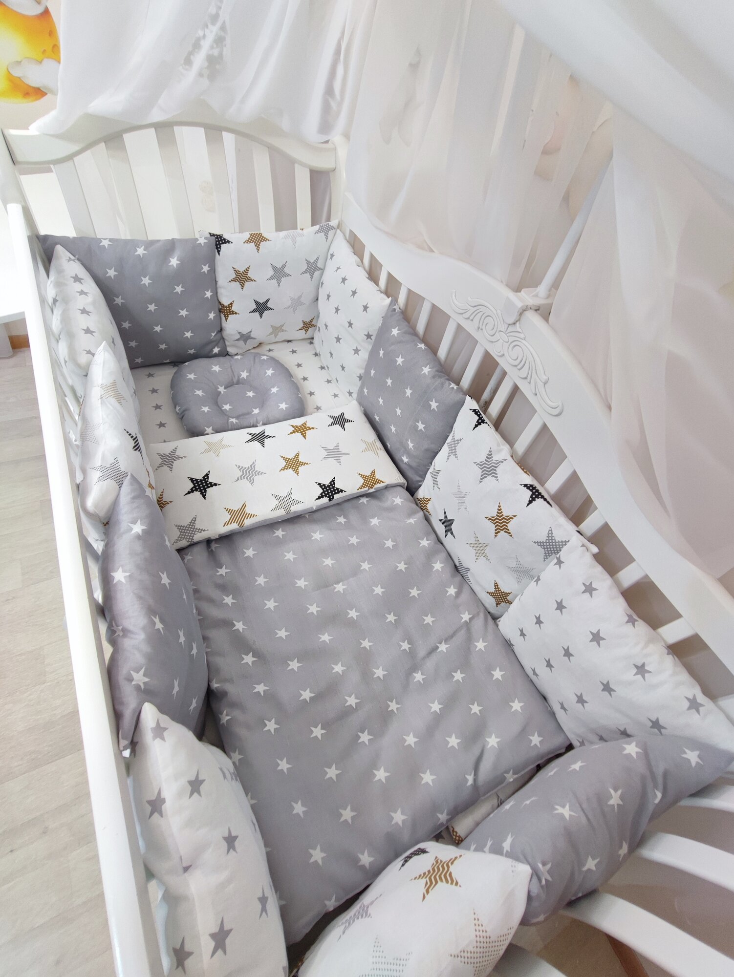 Купить Комплект бортиков в кроватку из 15 предметов Mamdis для новорожденных и малышей серый