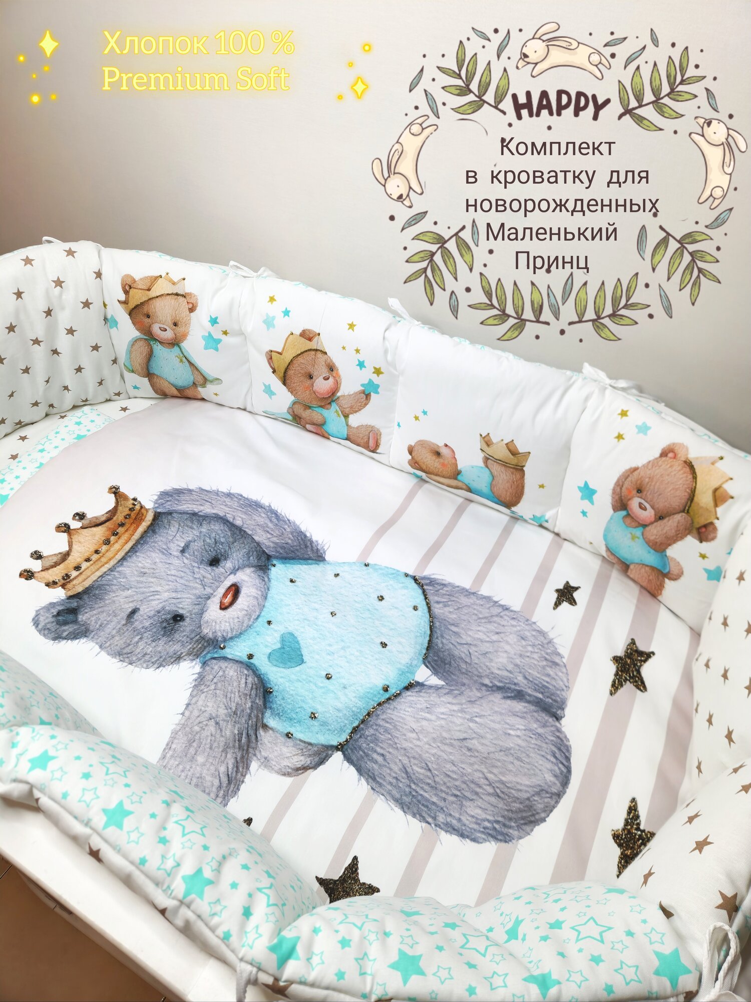 Комплект в кроватку для новорожденных с одеялом и постельным бельем маленький принц интересное: