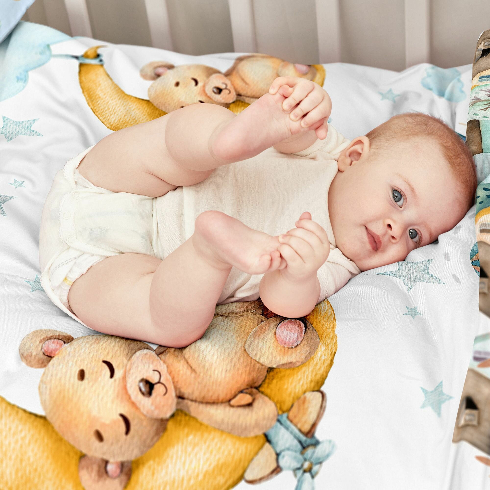 Детское постельное белье в кроватку для новорожденного Juno, Поплин, нав. 40х60, на резинке, Плюшевые мишки