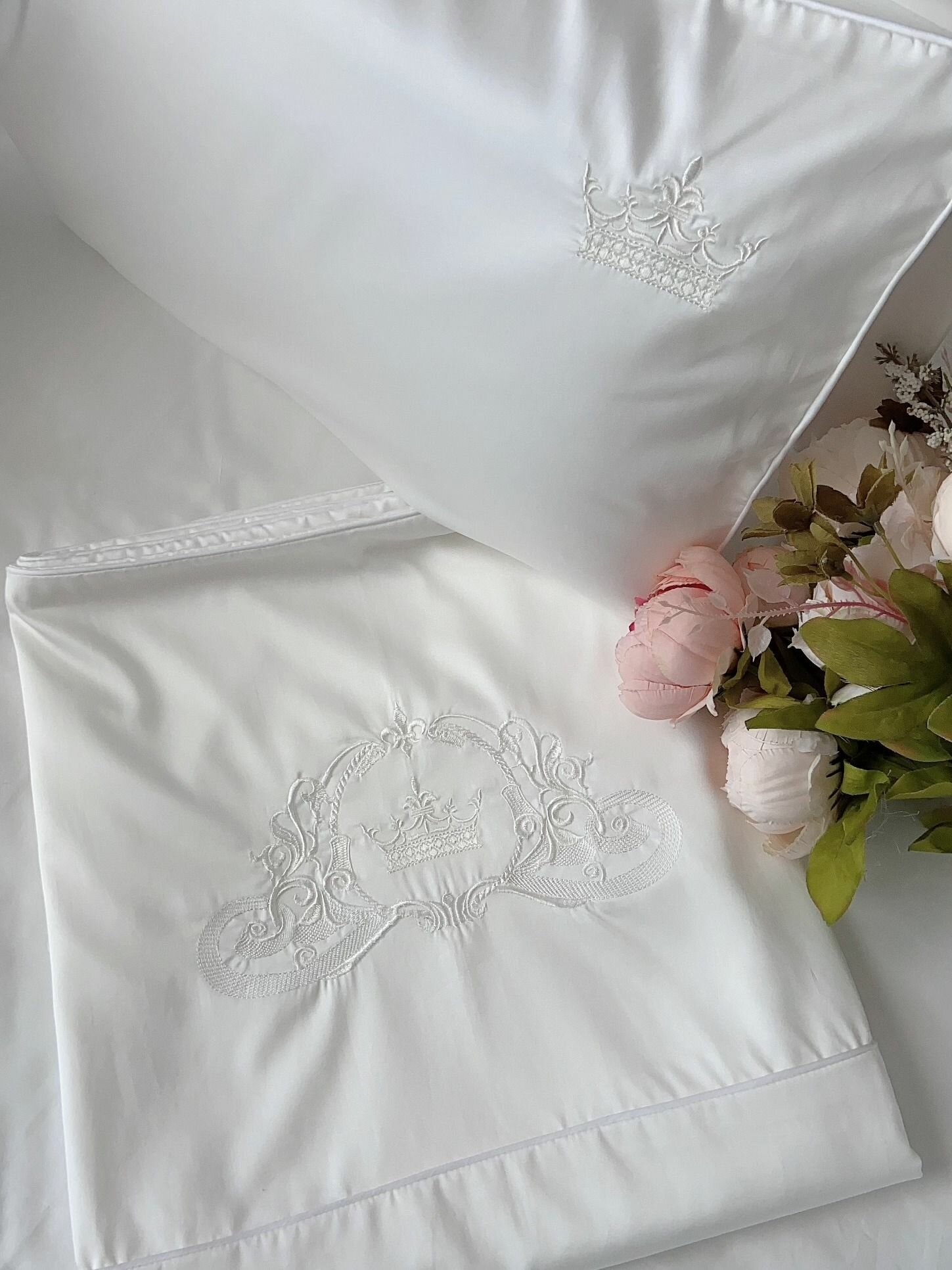 Купить Детский комплект постельного белья 1,5 спальное, однотонное "Вдохновение" с вышивкой, сатин, Наволочка 50*70 см и пододеяльник 145*205 см, молочный