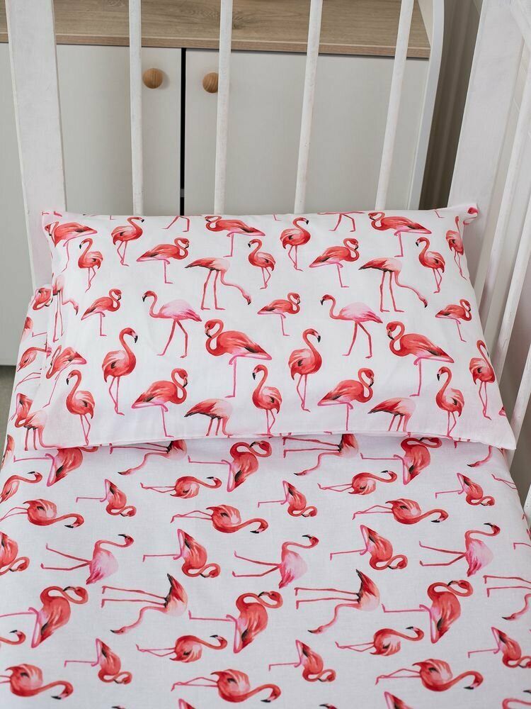 Простыня 100*150 см в детскую кроватку, перкаль, детская расцветка (Фламинго) интересное: