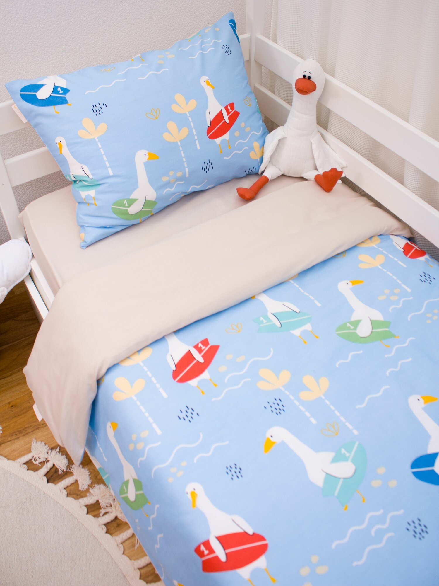 COROCOCO Комплект постельного белья Гусята на голубом 160х80 см. интересное: