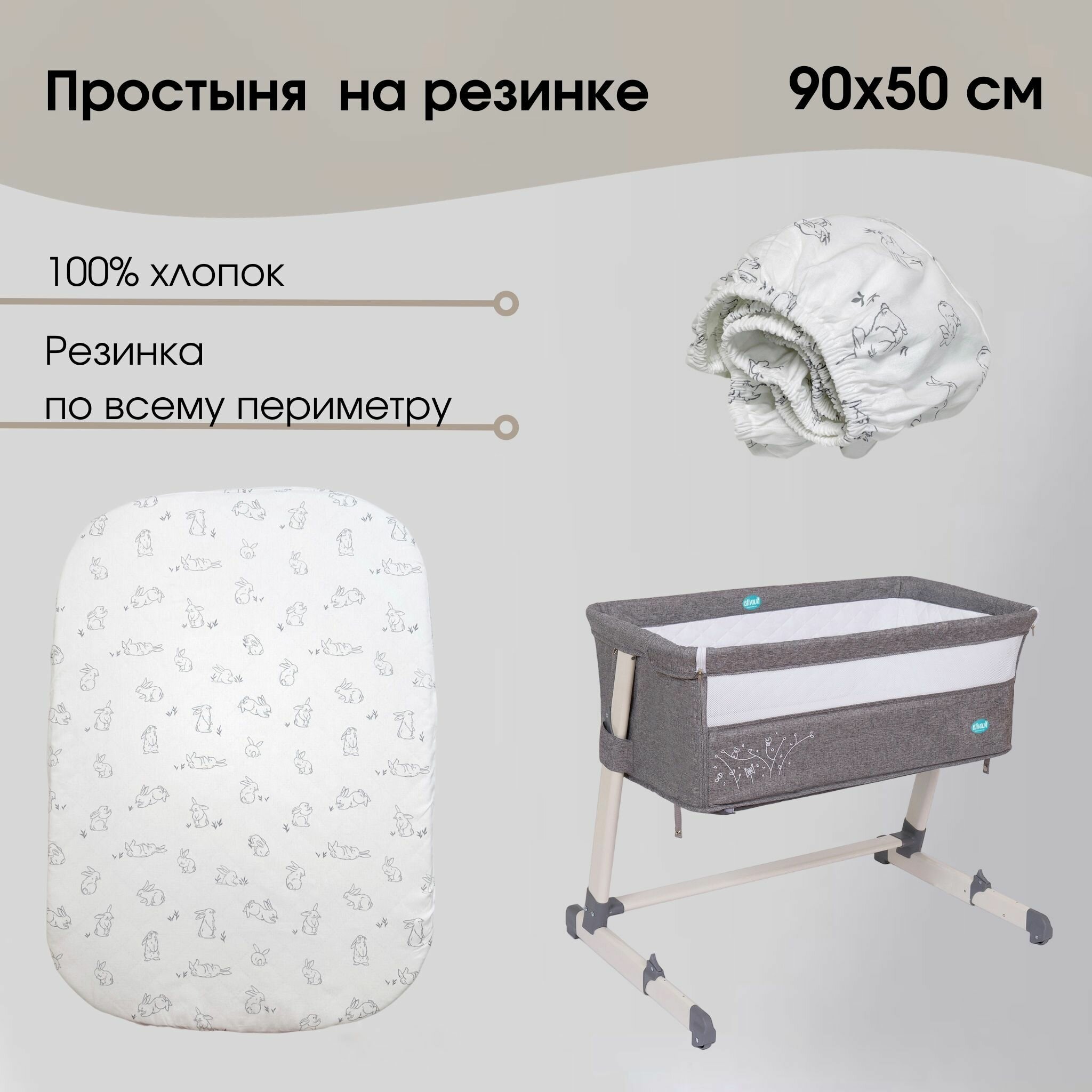 Простыня на резинке 50х90 см 100% Хлопок Поплин интересное: