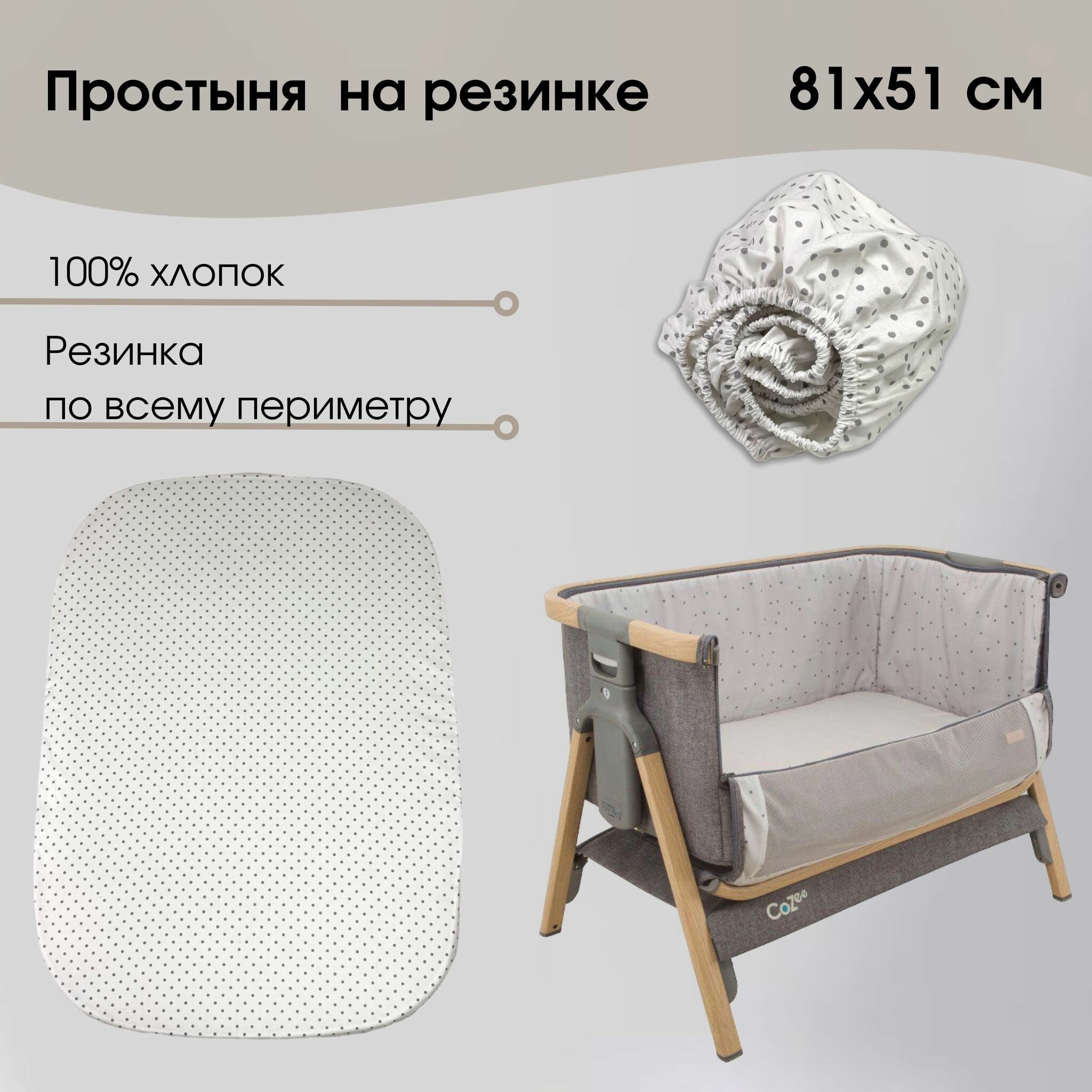Купить Простыня 51х81 см на резинке в люльку 100 % Хлопок