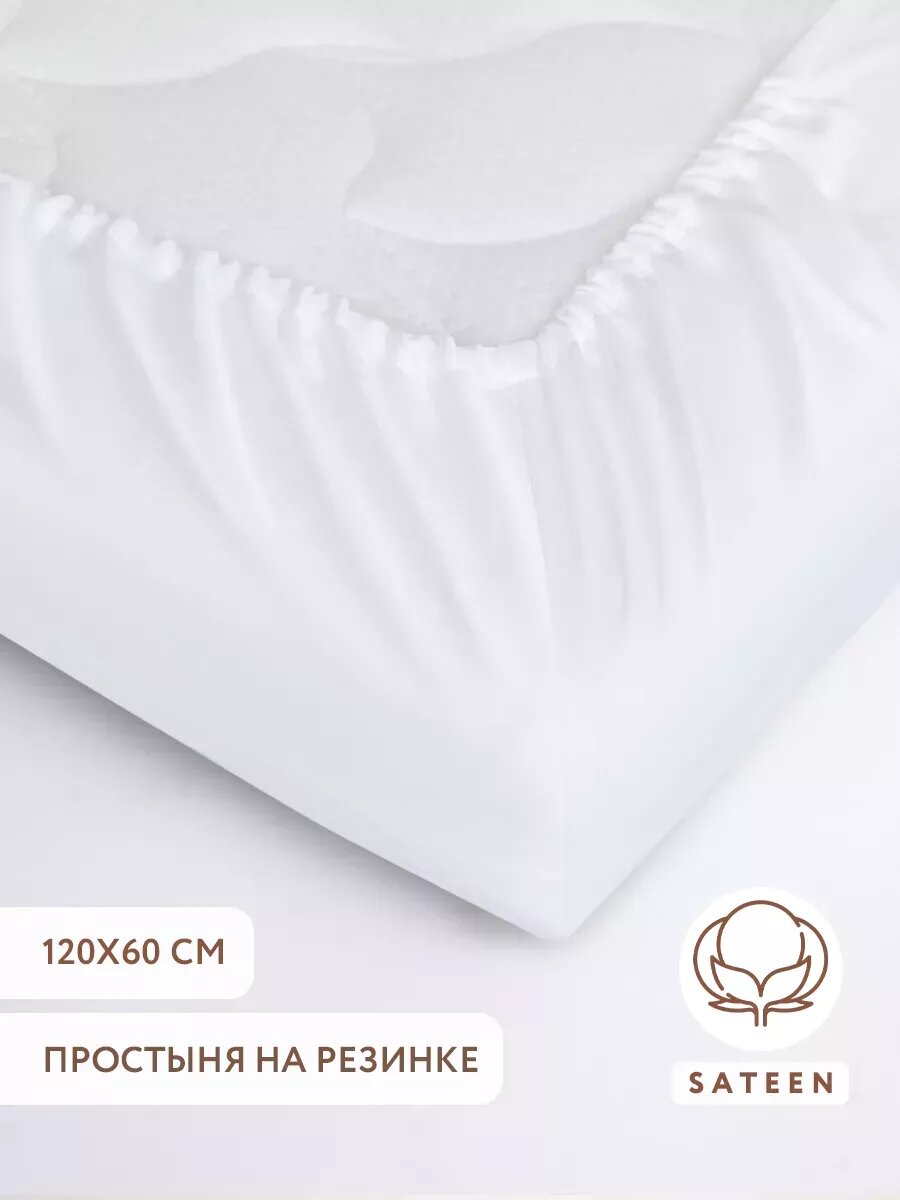 Простынь на резинке Perina, натяжная, в детскую кроватку, для прямоугольного матраса 120х60 см, сатин премиум, белая интересное: