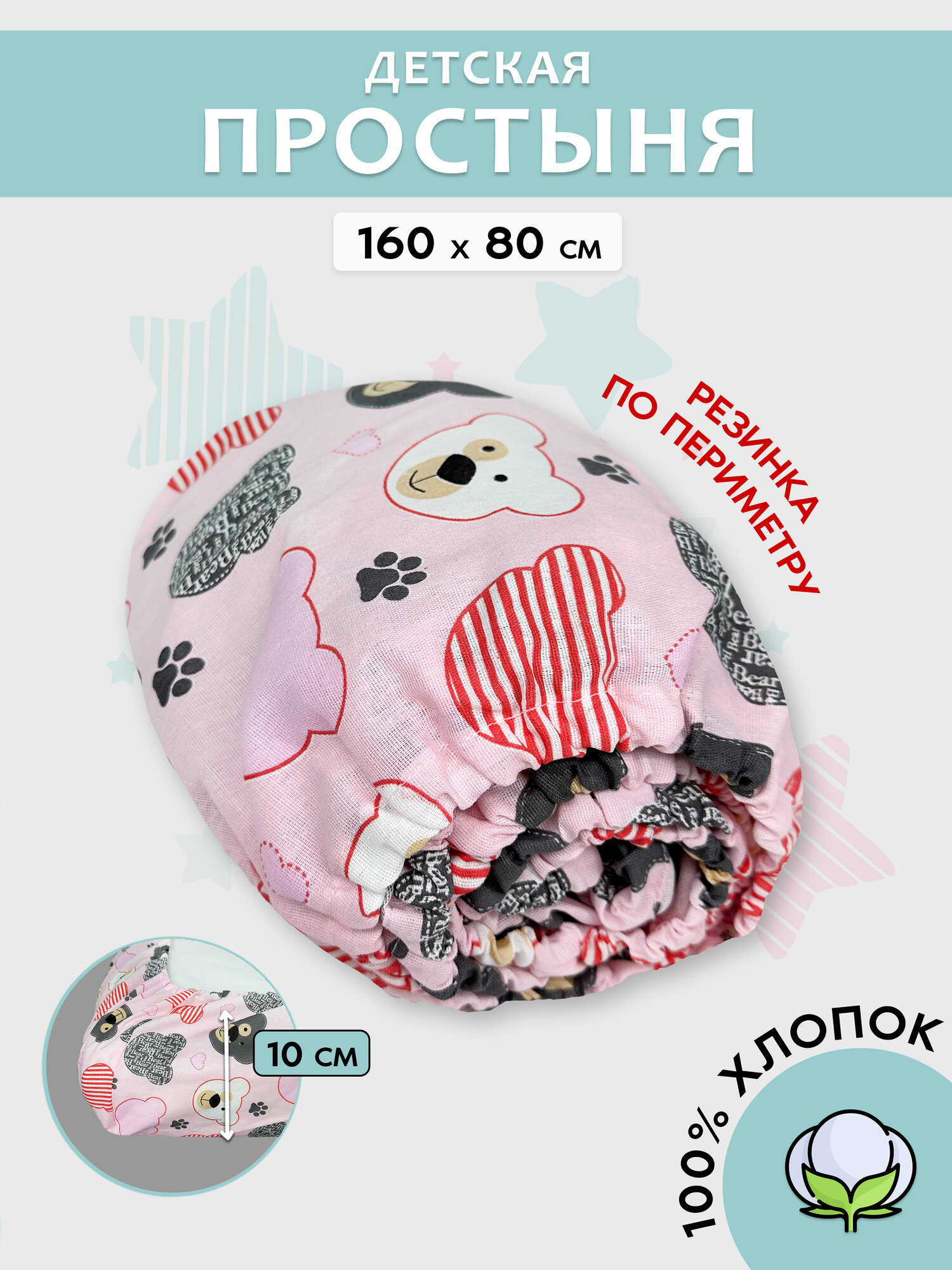 Простынь детская на резинке 160х80 см Мишки на розовом интересное:
