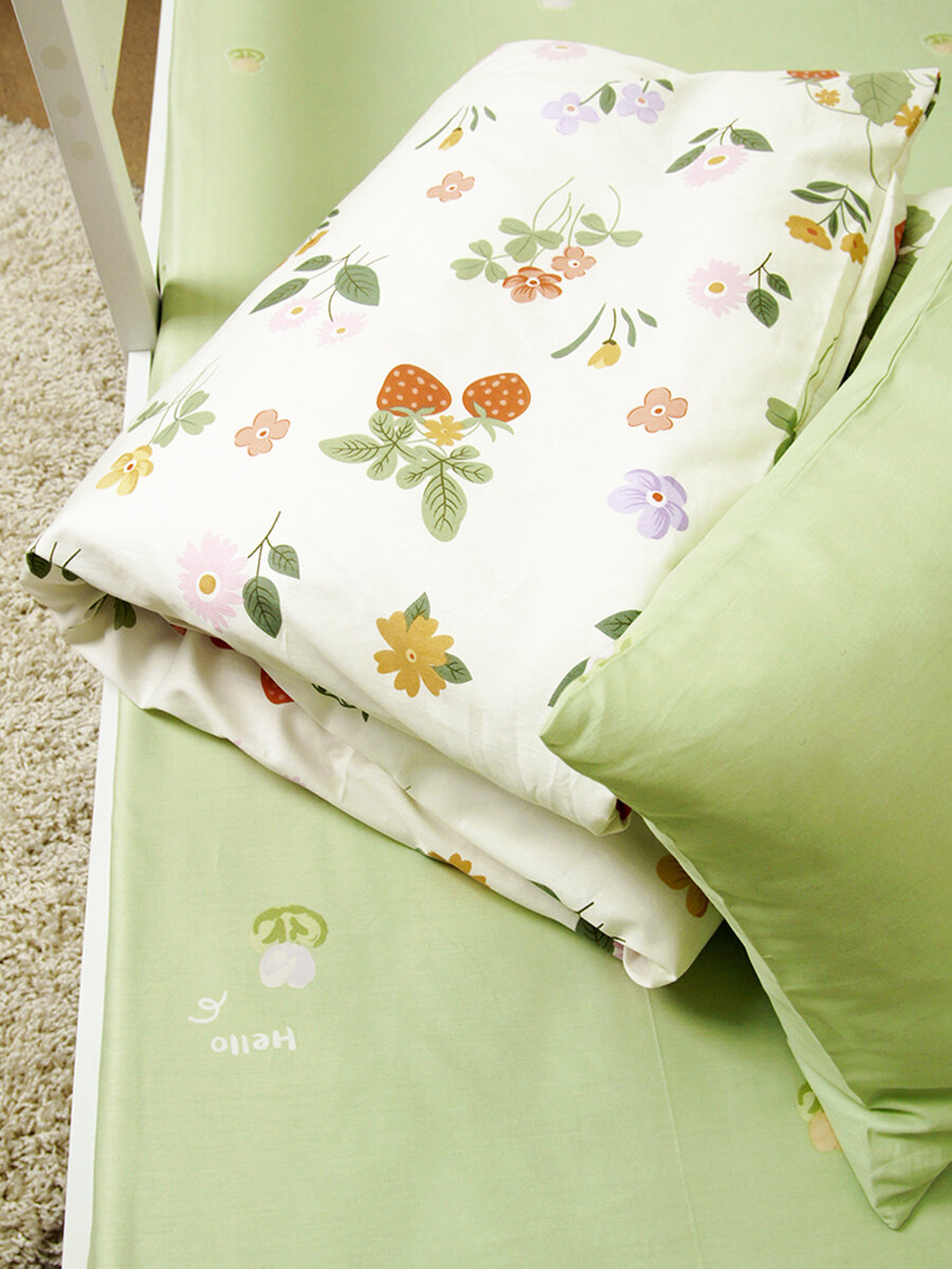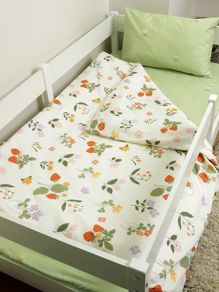Купить Детское постельное белье 160х80 сатин "Клубника на зеленом" 396/3