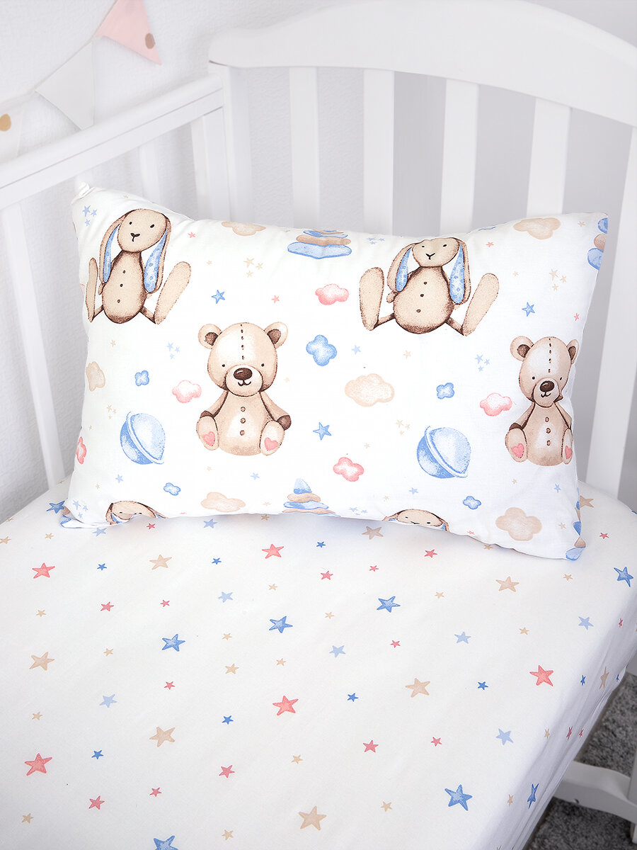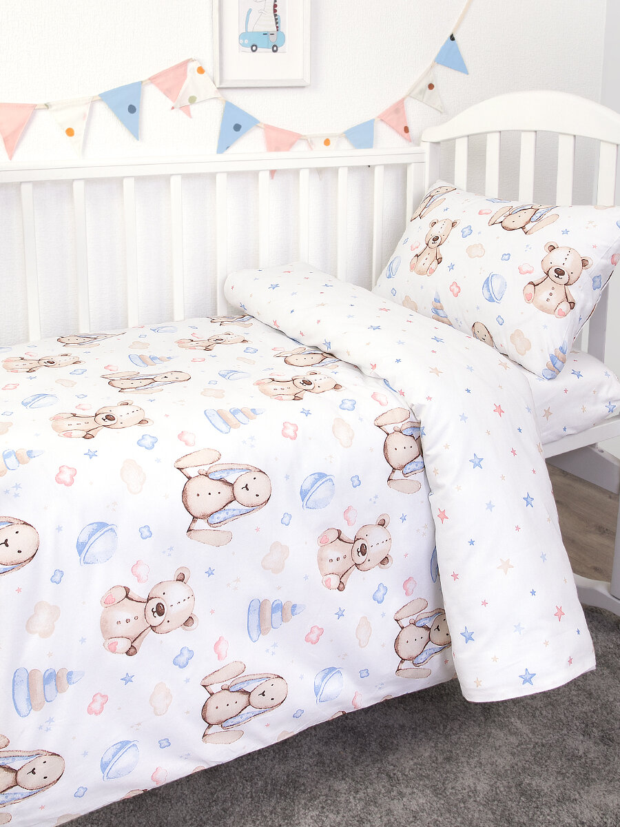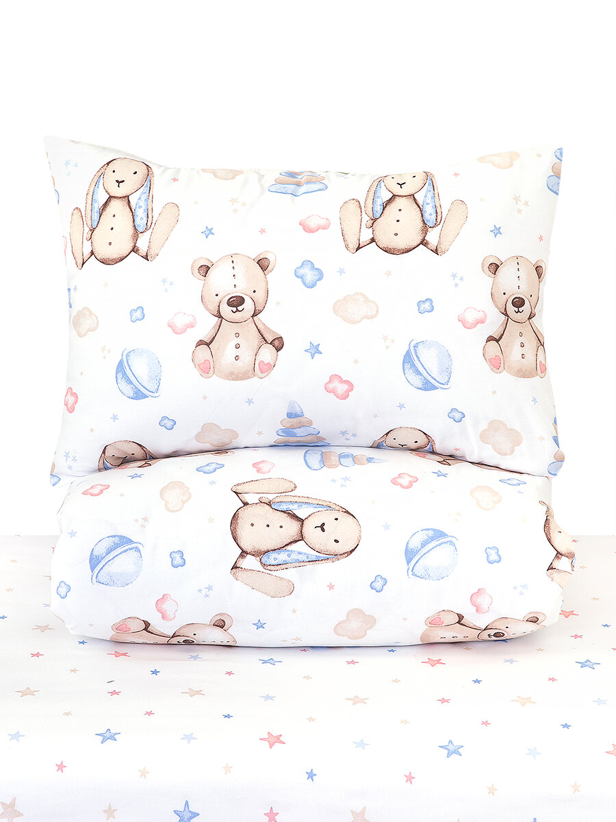 Постельное белье в кроватку для новорожденного хлопок 100%. Простыня на резинке. Медвежата и зайки в облаках