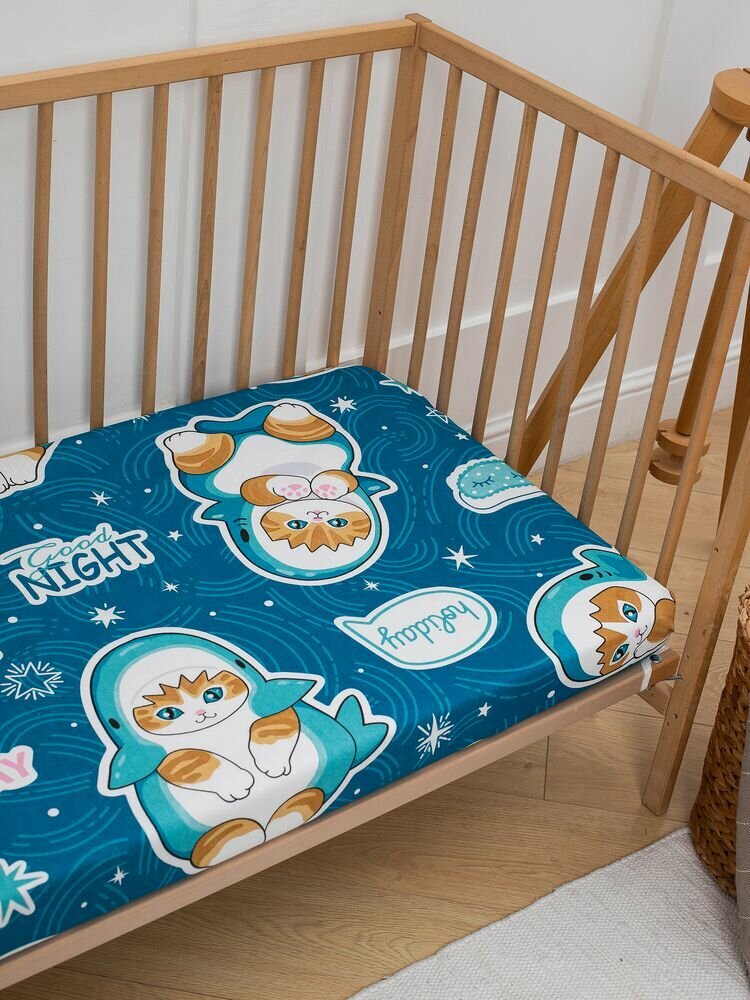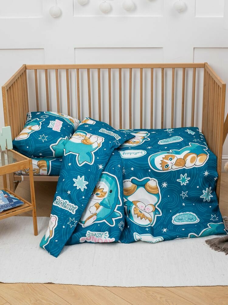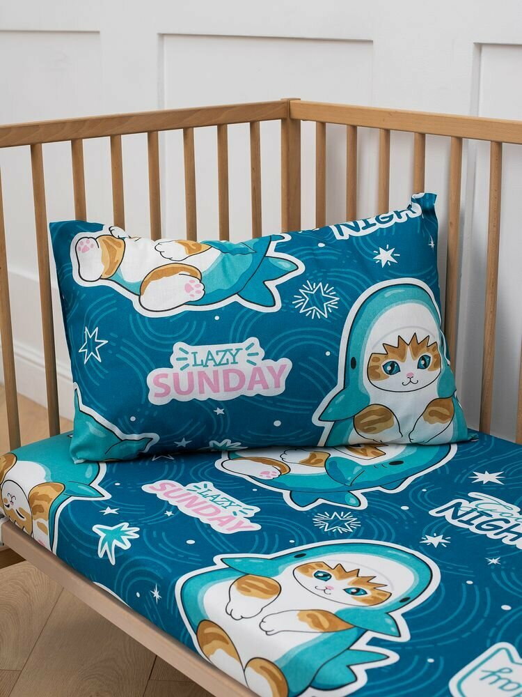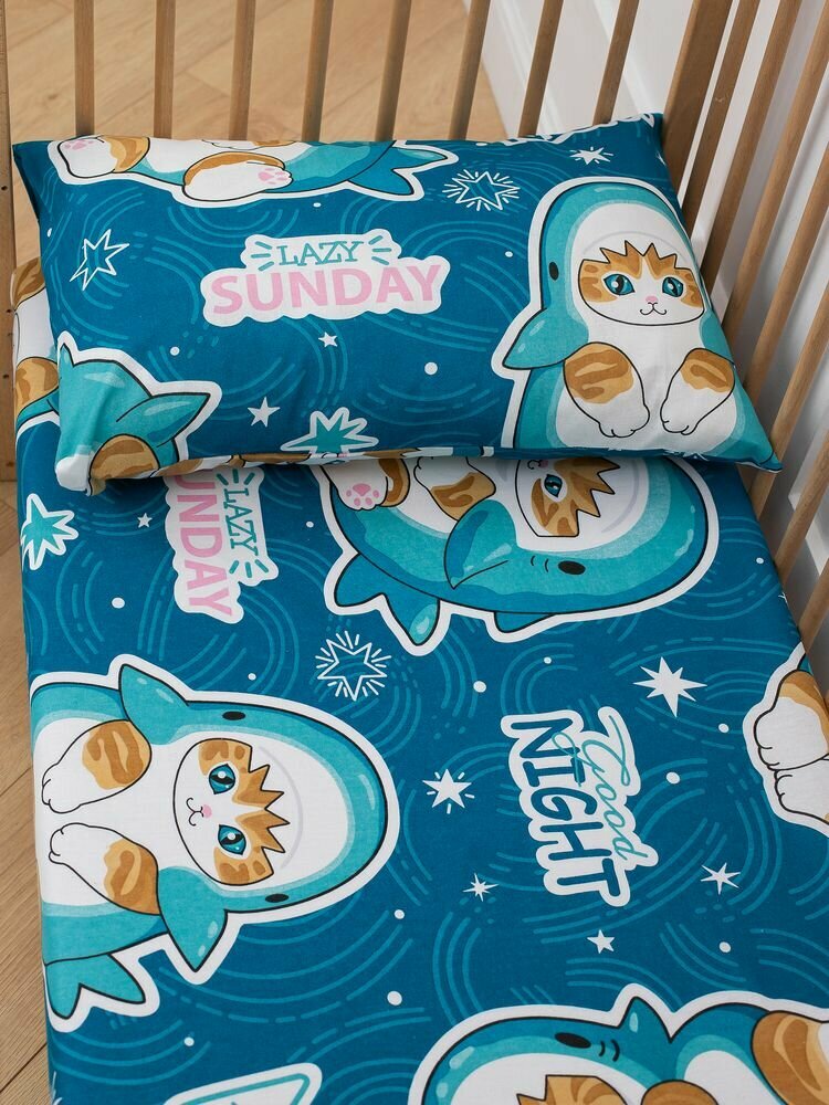 Комплект постельного белья в детскую кроватку, бязь "Комфорт", детская расцветка (Кот Акула) интересное: