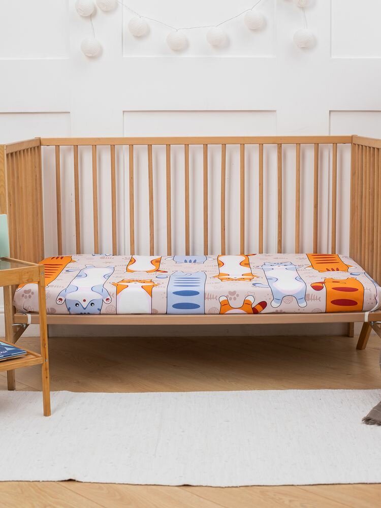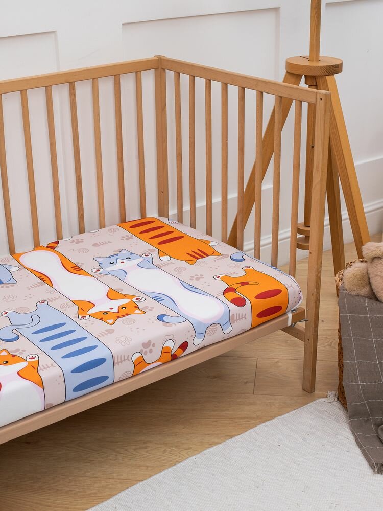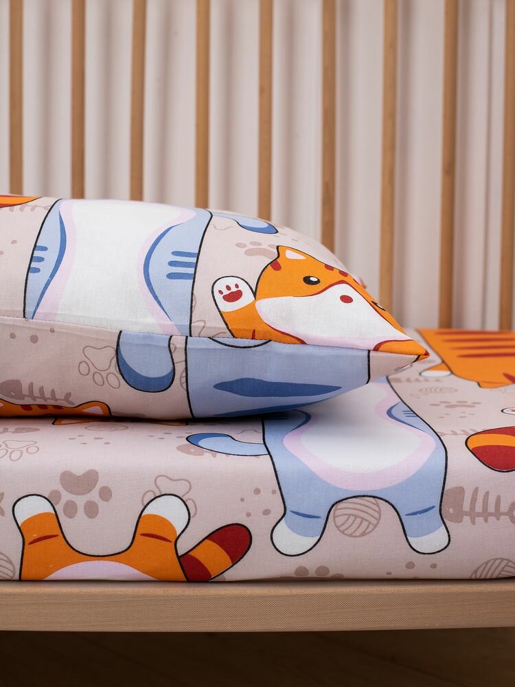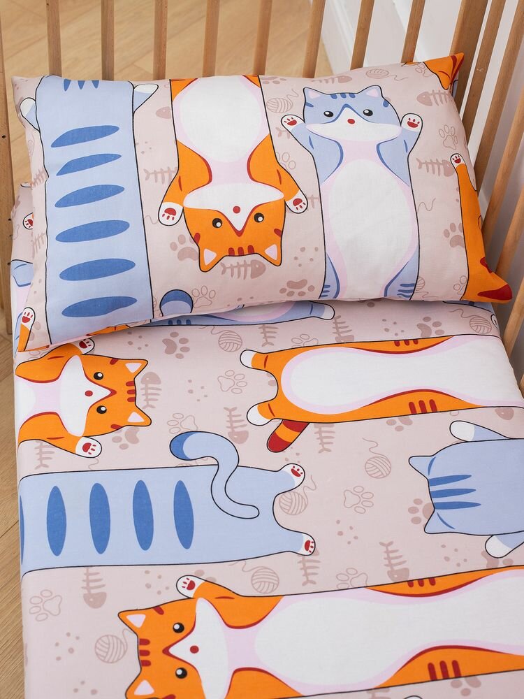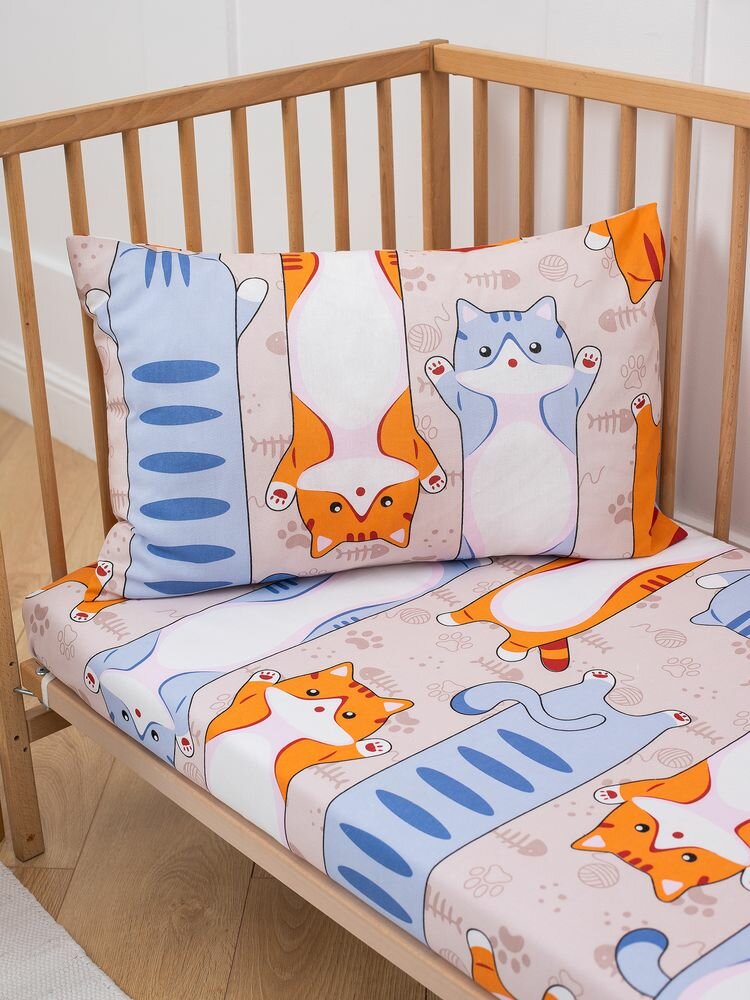 Комплект постельного белья в детскую кроватку, бязь "Комфорт", детская расцветка (Кот батон) интересное:
