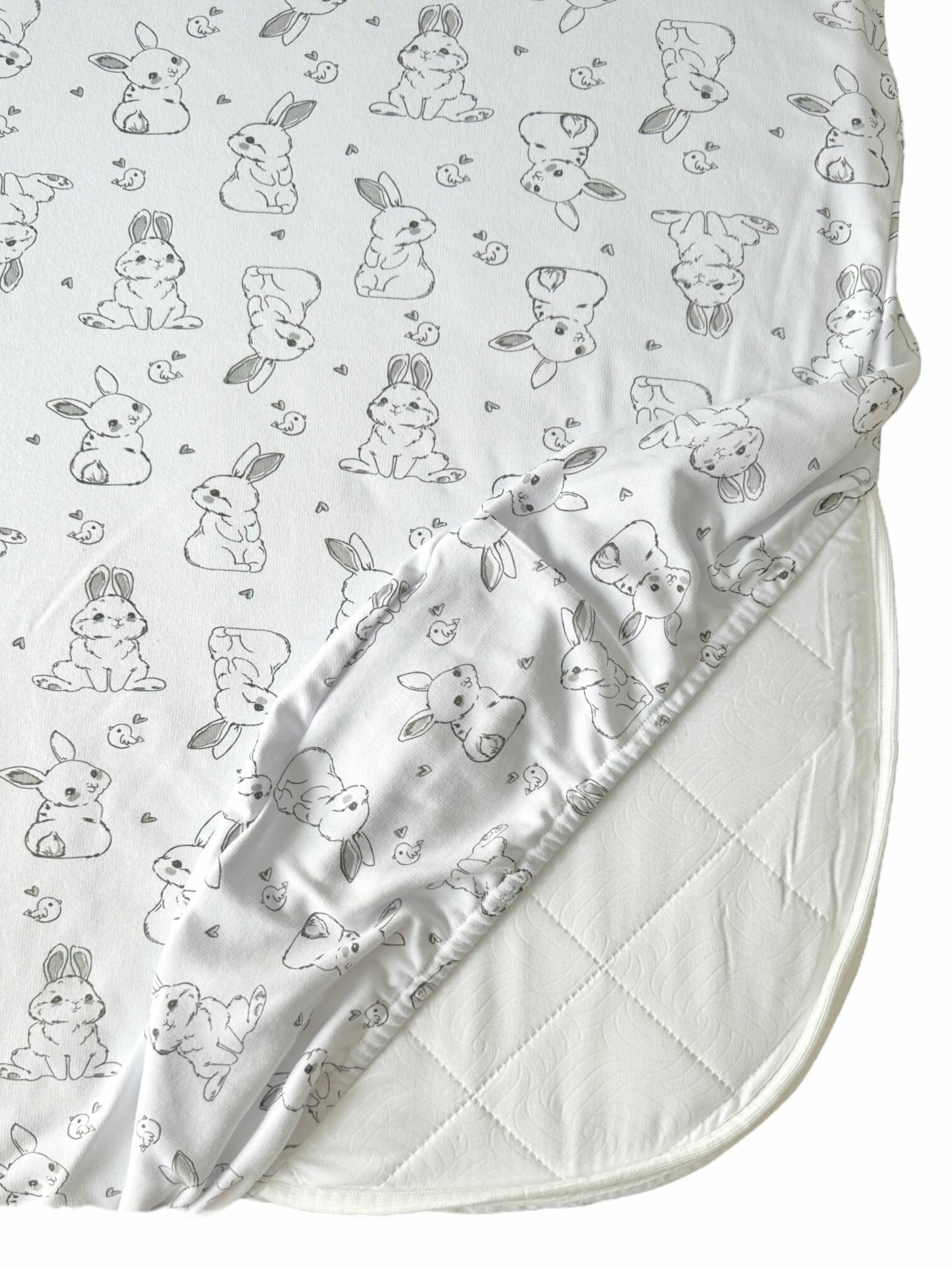 Купить Простыня на резинке 50 x 80 см , 100% хлопок Трикотаж Зайки детский размер