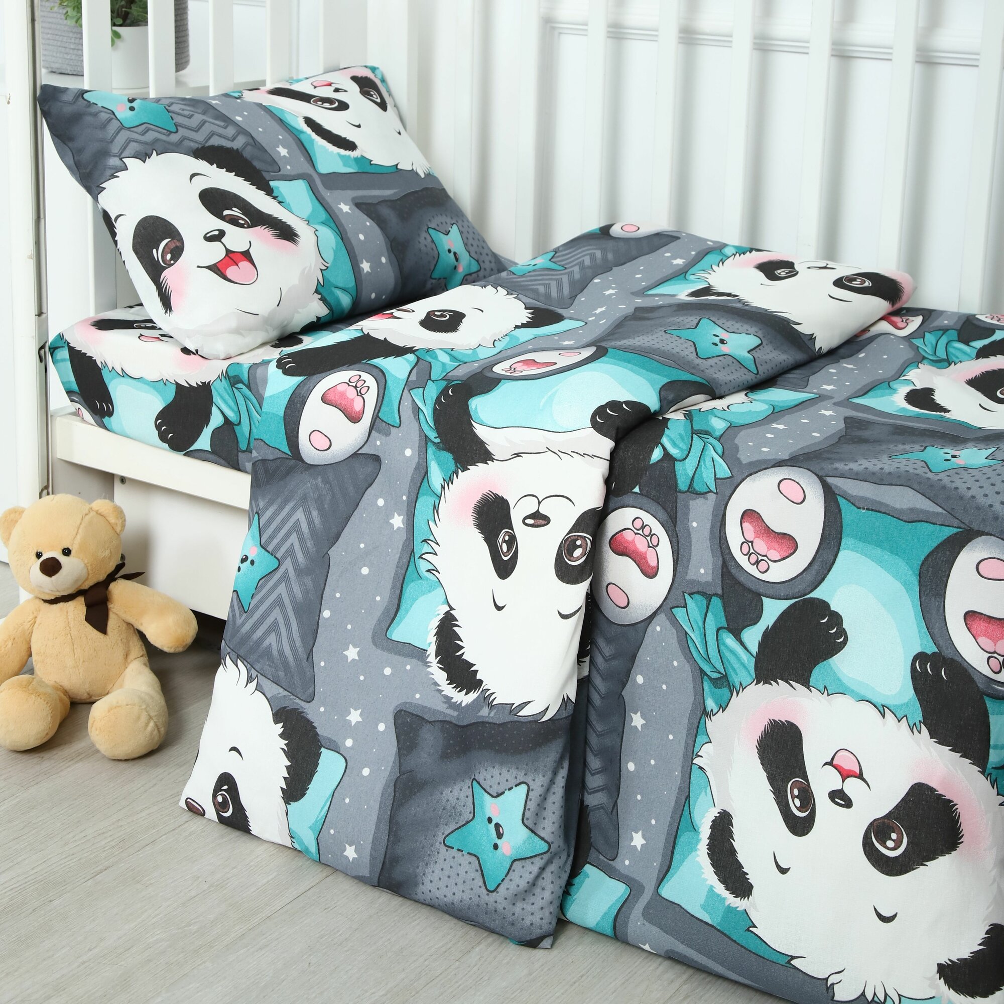 Купить Комплект детского постельного белья "Панда" из бязи (100 % хлопок)
