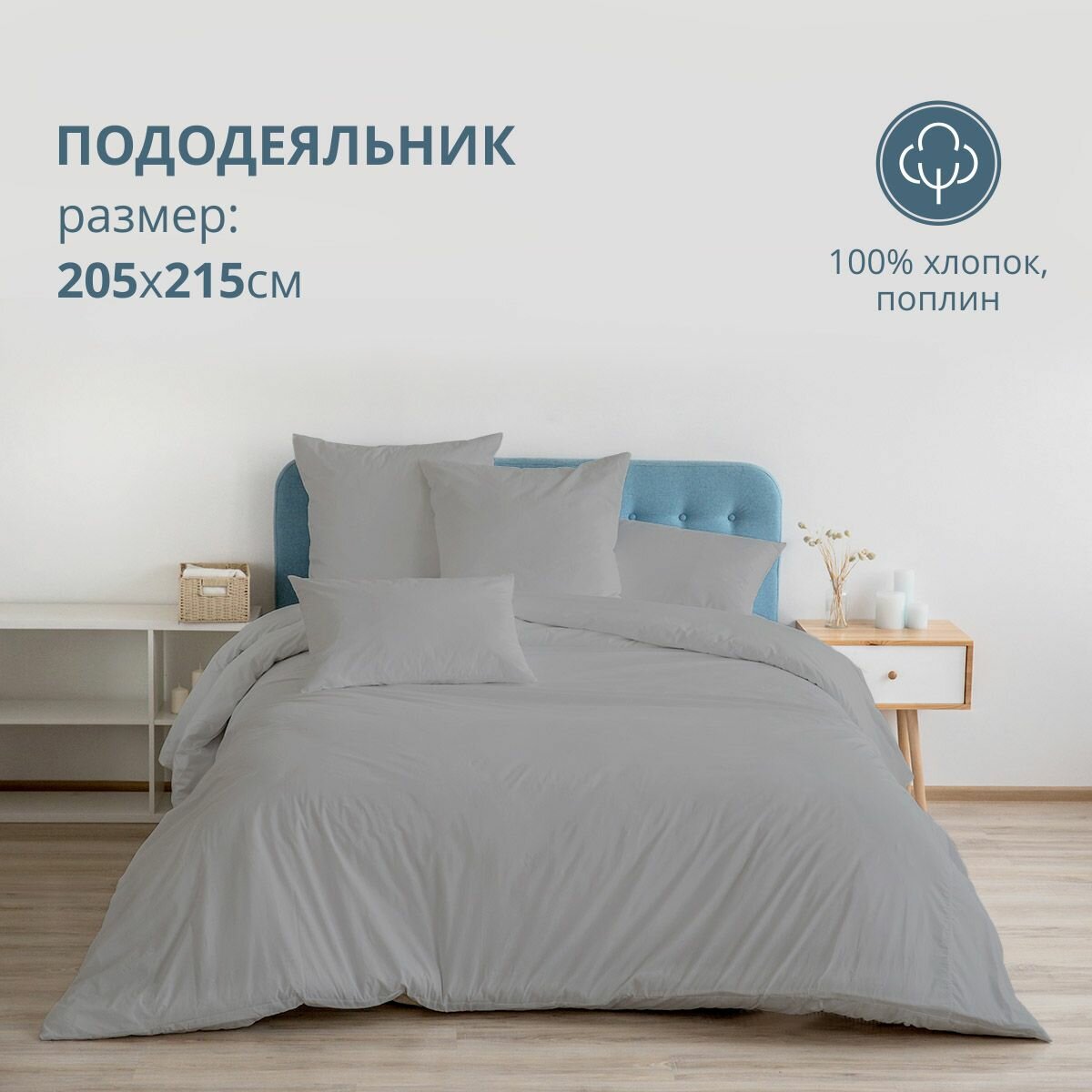Пододеяльник BRAVO поплин Евро размер 205х215 см хлопок, серый интересное:
