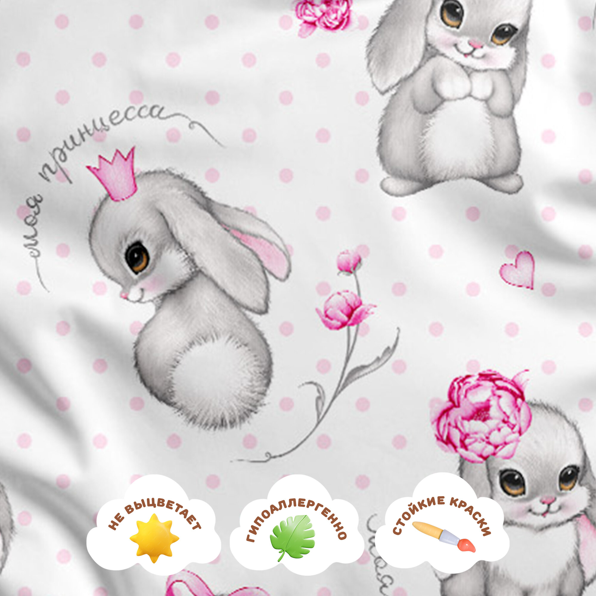 Купить Детское постельное белье в кроватку Juno, Поплин, для матрасов 160х80 см, нав. 40х60, Милые зайки