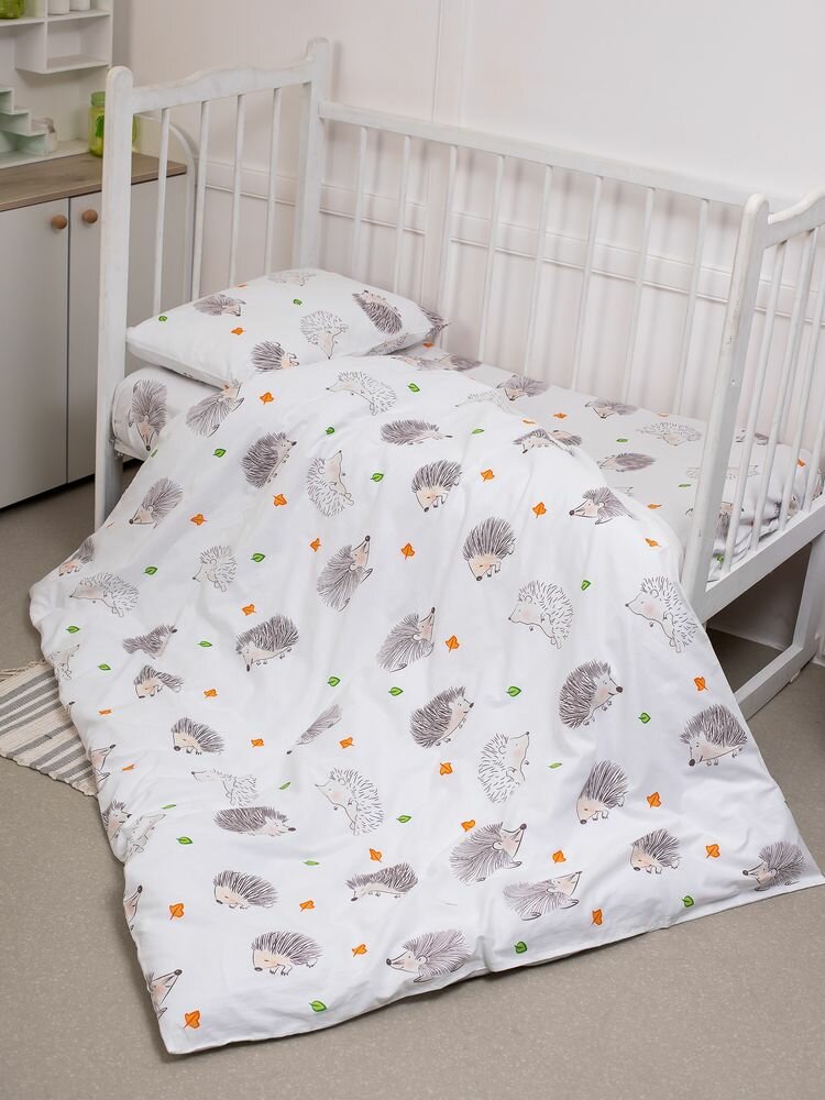 Купить Комплект постельного белья в детскую кроватку, перкаль (Ёжики)