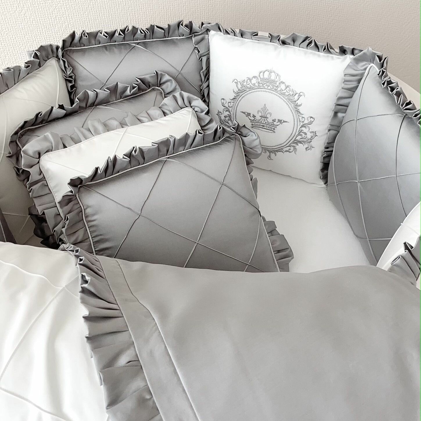 Бортики в кроватку для новорожденных "Идеал", в кроватку для новорожденных 120*60 см или овальной 125*75 см, сатин
