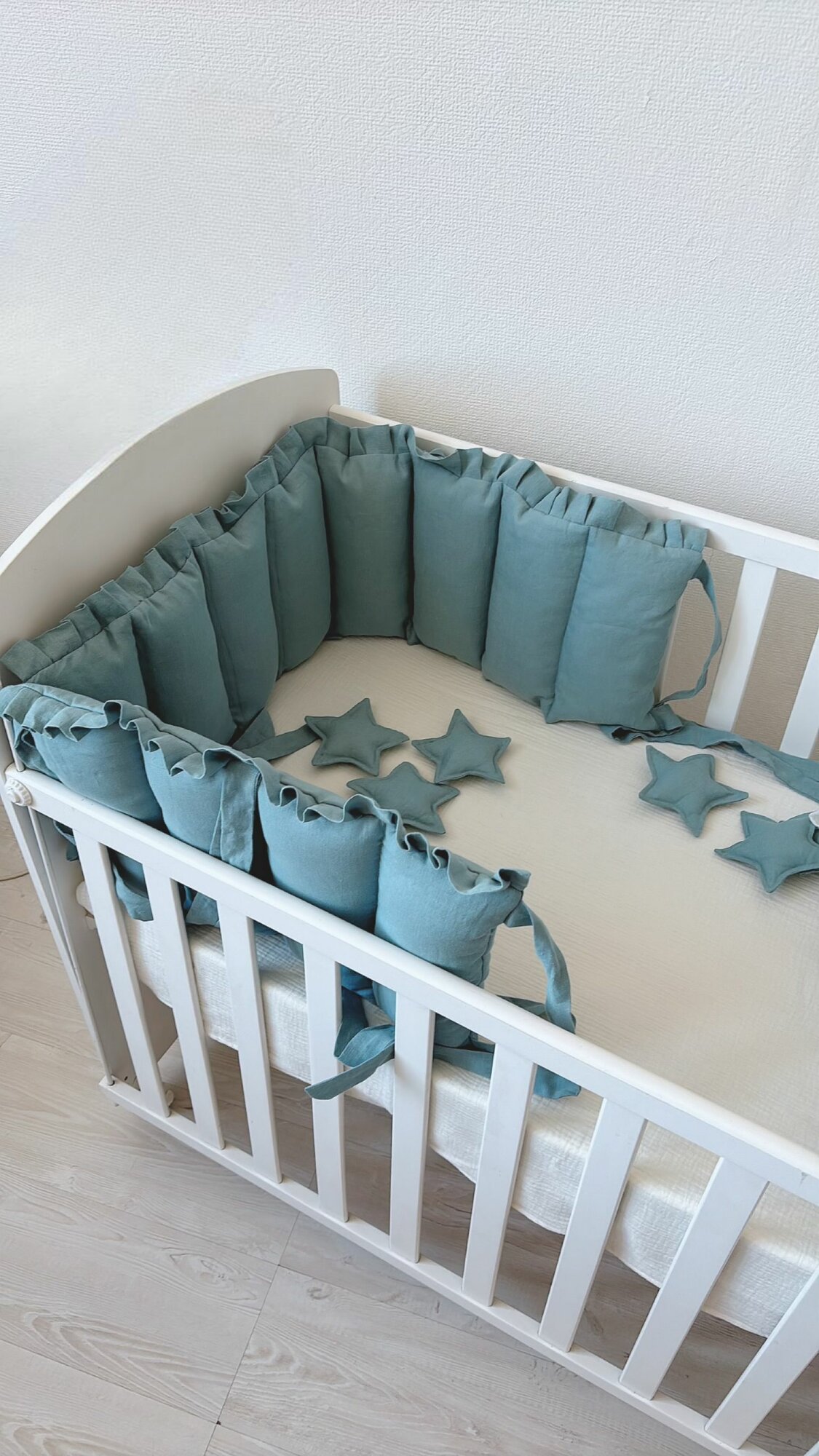 Бортики из льна на половину кроватки 120*60 см с рюшей (оборкой) интересное:
