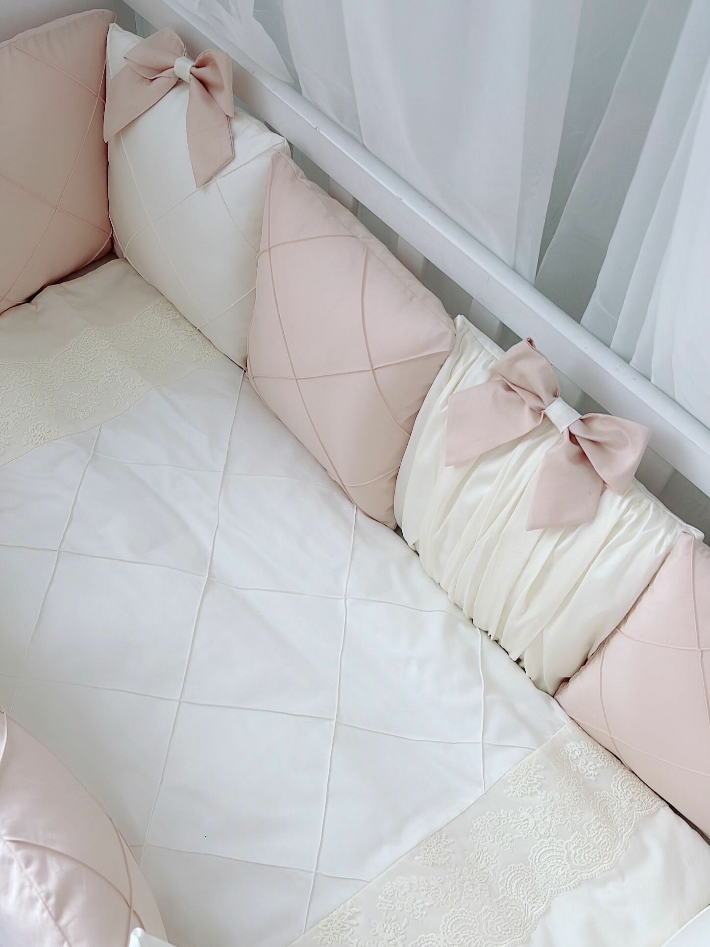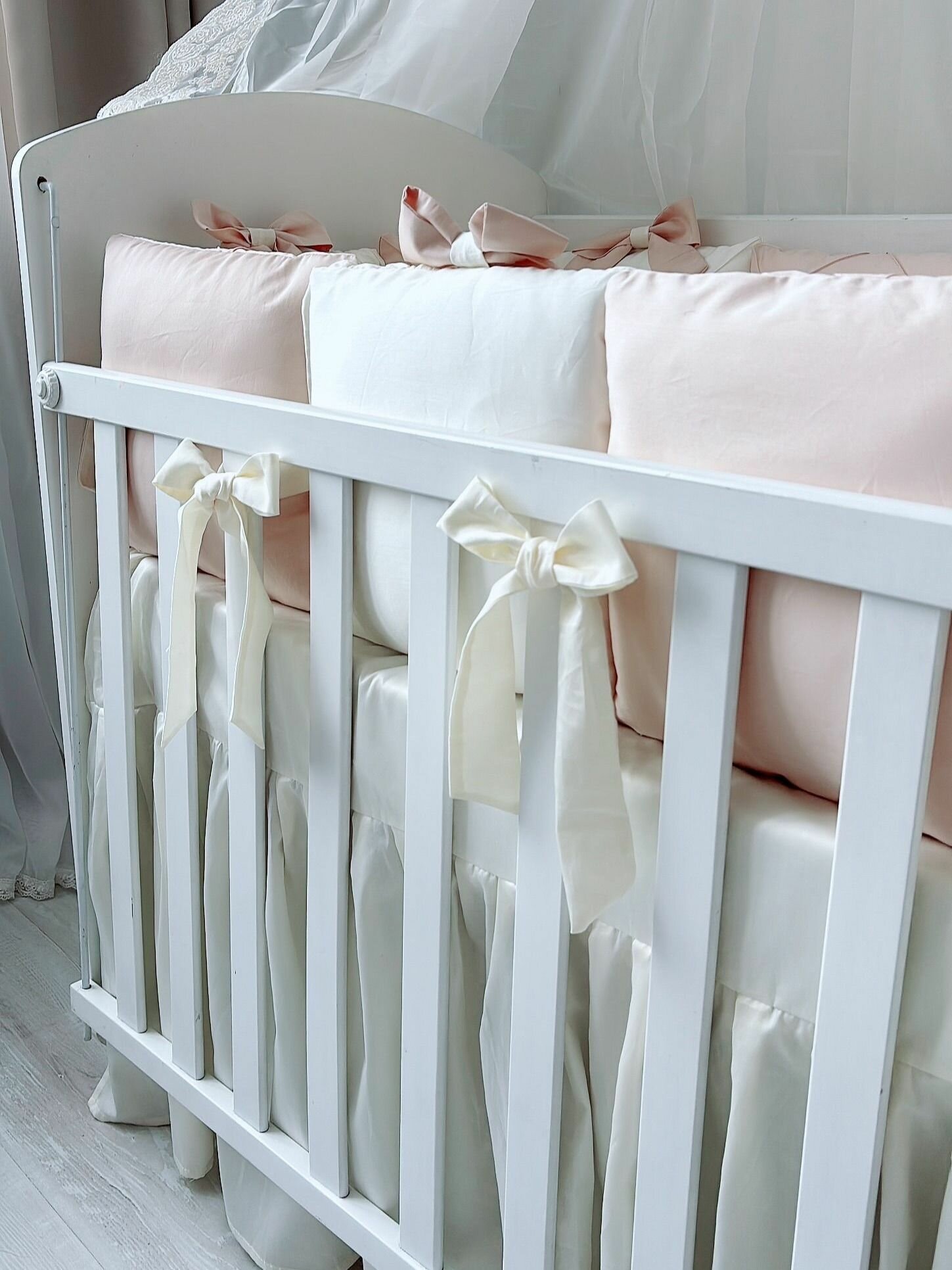 Купить Бортики в детскую кроватку "Спокойствие", 12 подушек, в прямоугольную 120*60 см и овальную 125*75 см, сатин