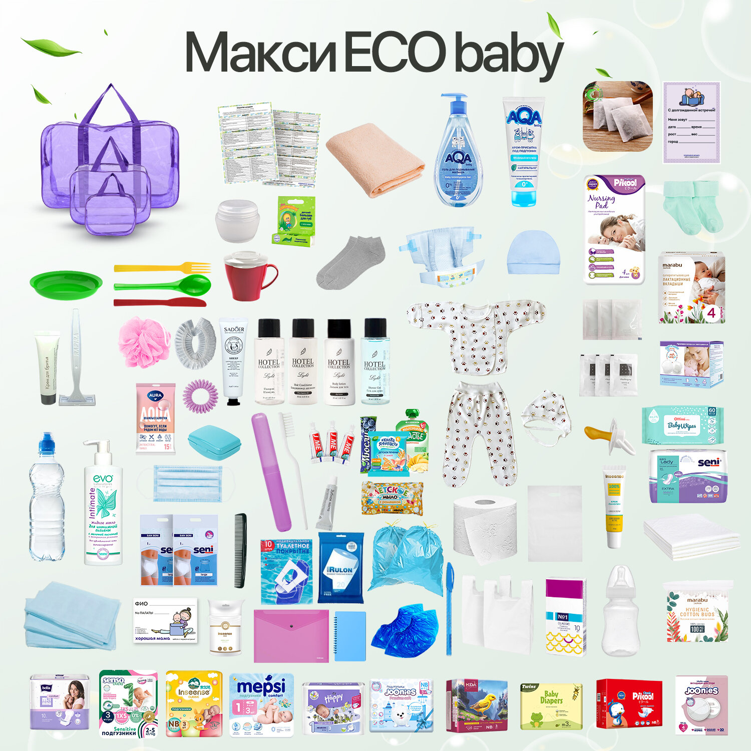 Готовая сумка в роддом для мамы и малыша MAXI ECO фиолетовая тонированная (80 предметов) интересное: