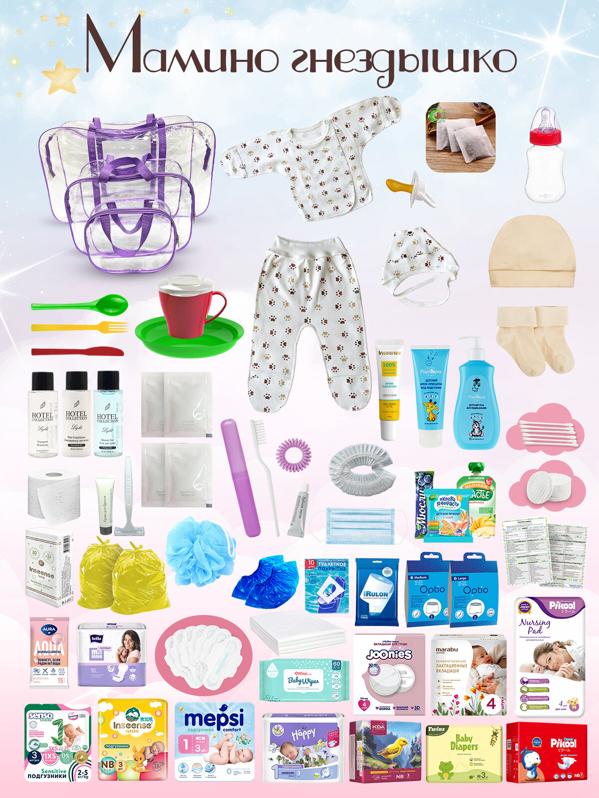СохранитьГотовая сумка в роддом для малыша и мамы с одеждой "Мамино гнездышко", 59 предметов, фиолетовая интересное: