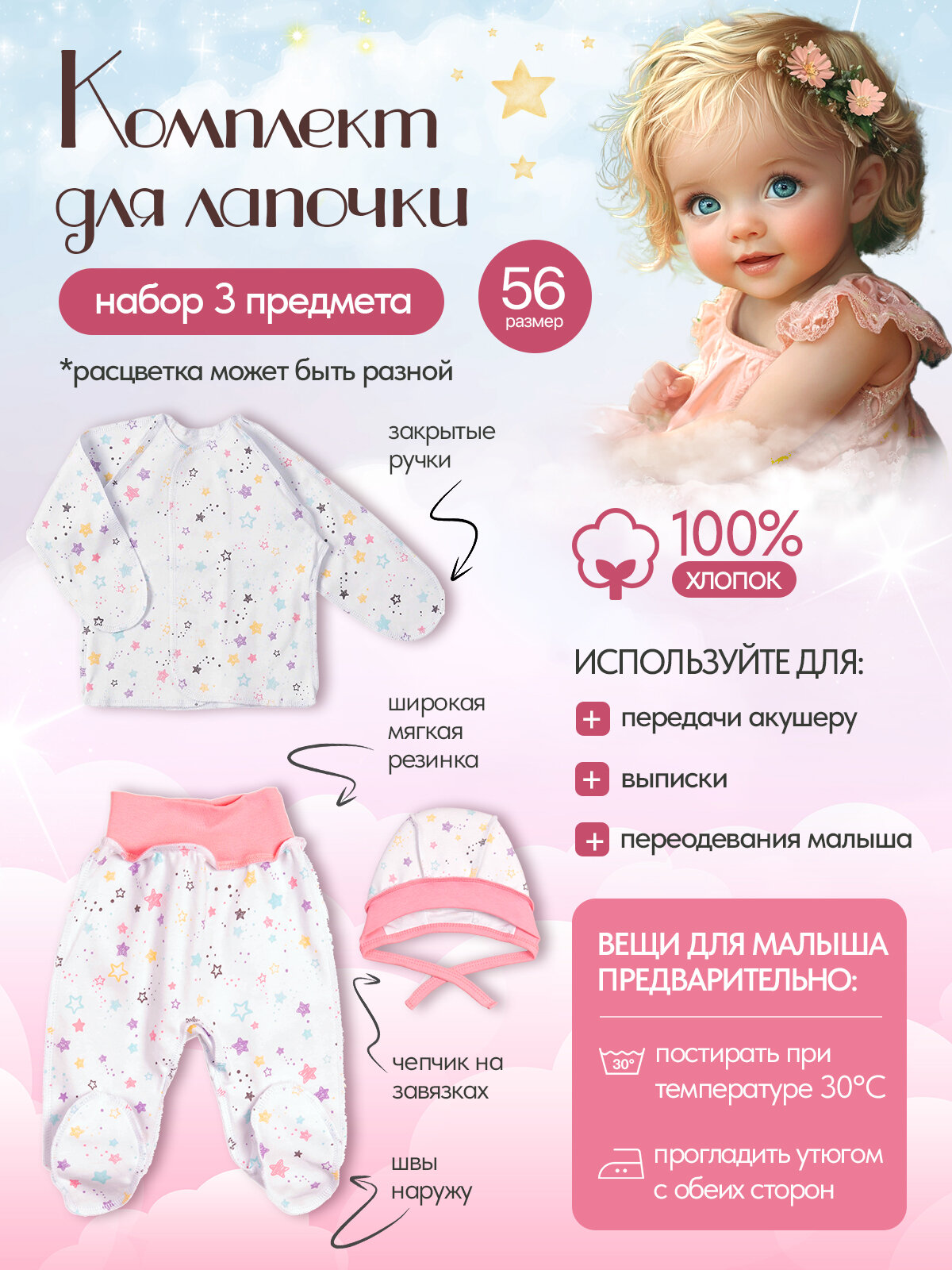 Готовая сумка в роддом для малыша и мамы с одеждой "Мамино гнездышко", 59 предметов, фиолетовая
