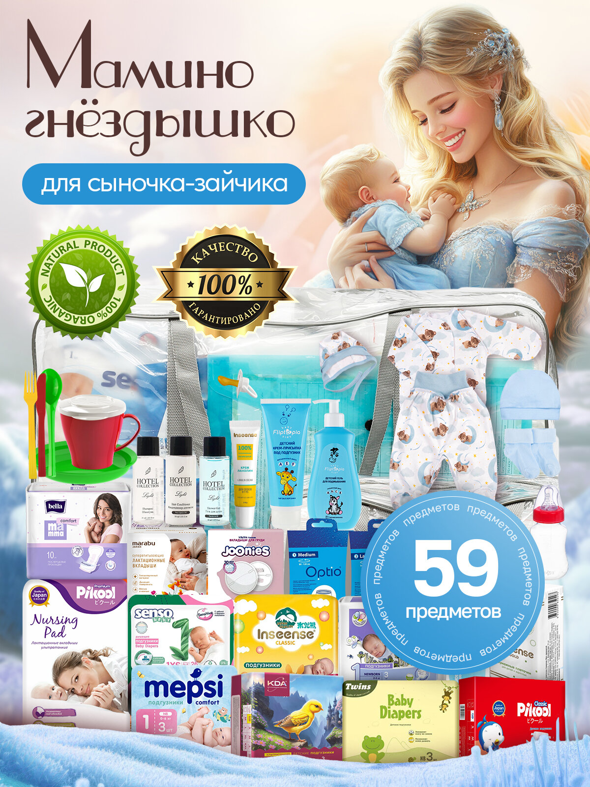 СохранитьГотовая сумка в роддом для мальчика "Мамино гнездышко", 59 предметов, серая интересное:
