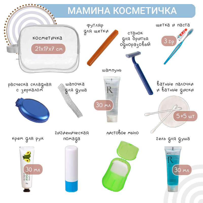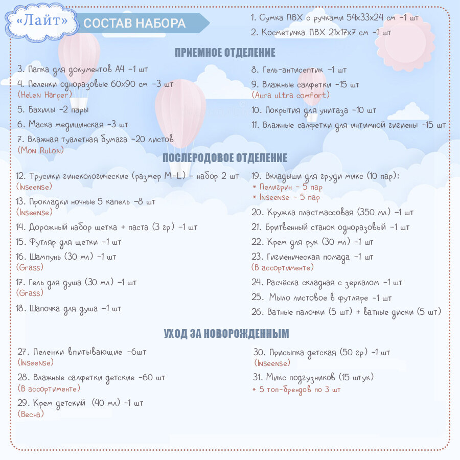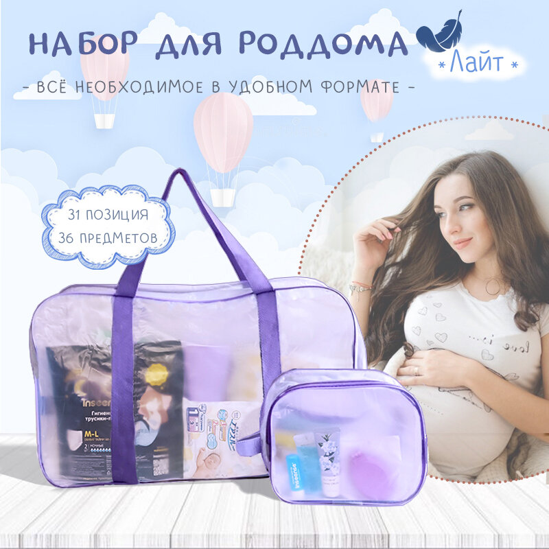 Готовая сумка в роддом 31 позиция, 36 предметов, сумка + косметичка, набор в роддом для мамы и малыша интересное: