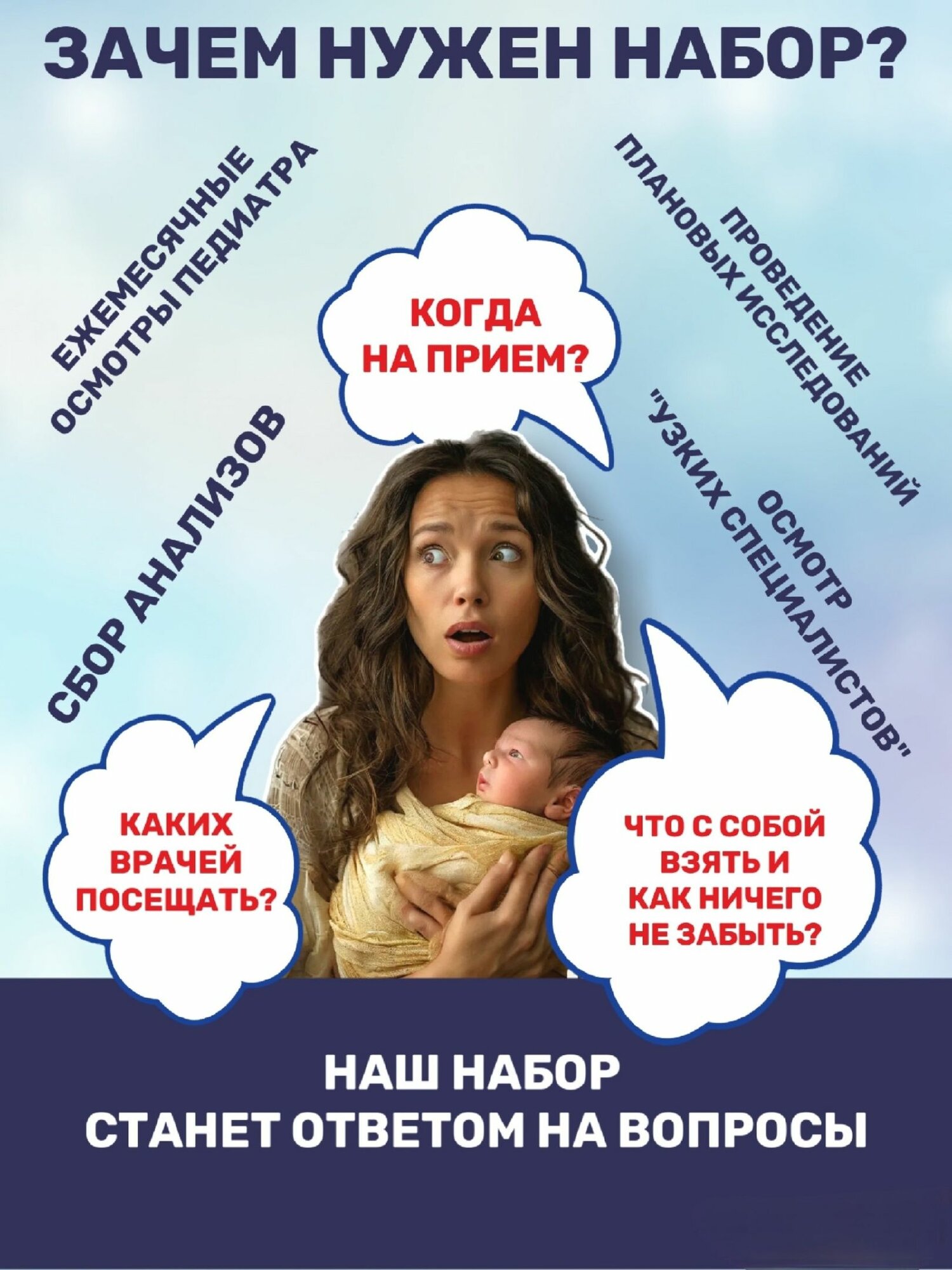 Набор для новорожденного в поликлинику для сбора анализов+сертификат о прививках, комплект 85 предметов интересное:
