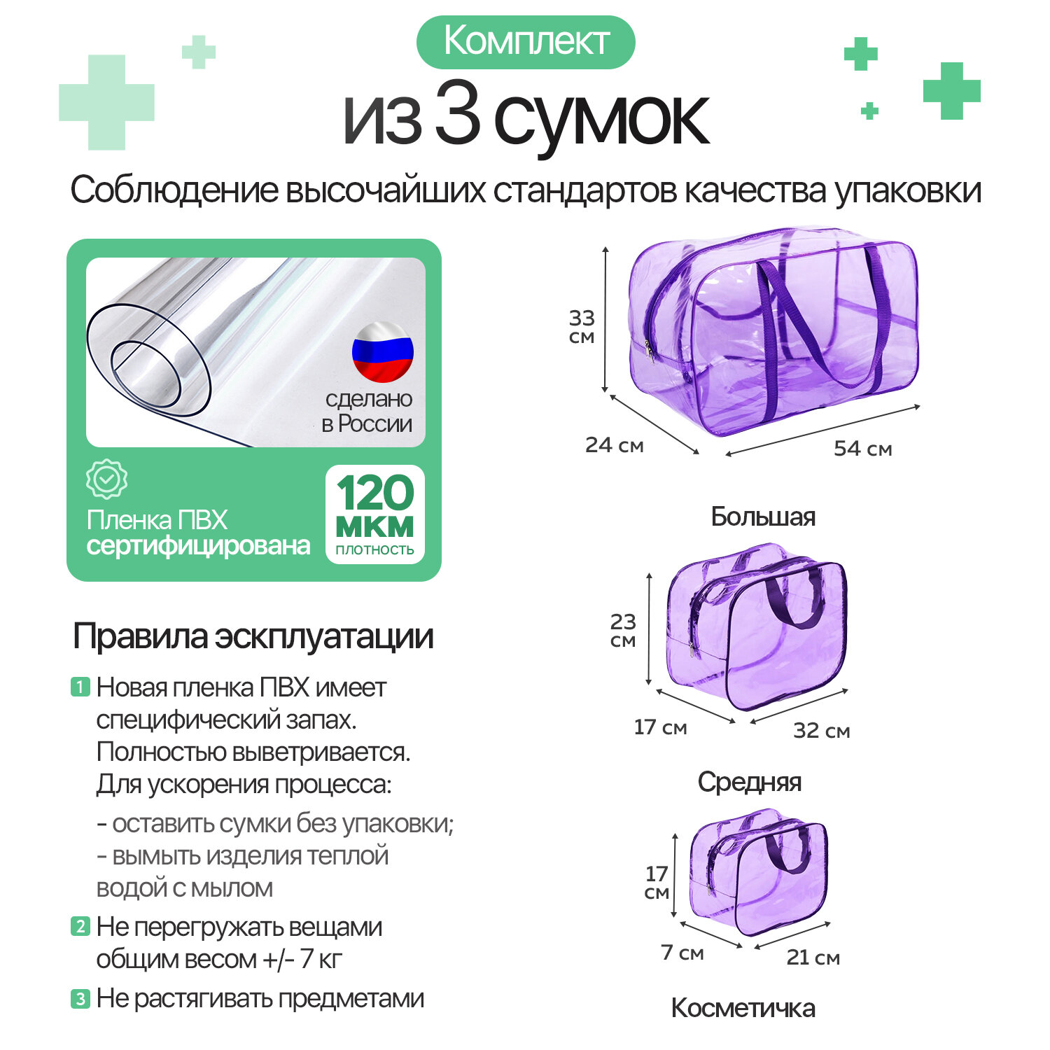 Готовая сумка в роддом "Базовая" с наполнением (42 предмета в 3х сумках) (фиолетовая тонированная) интересное: