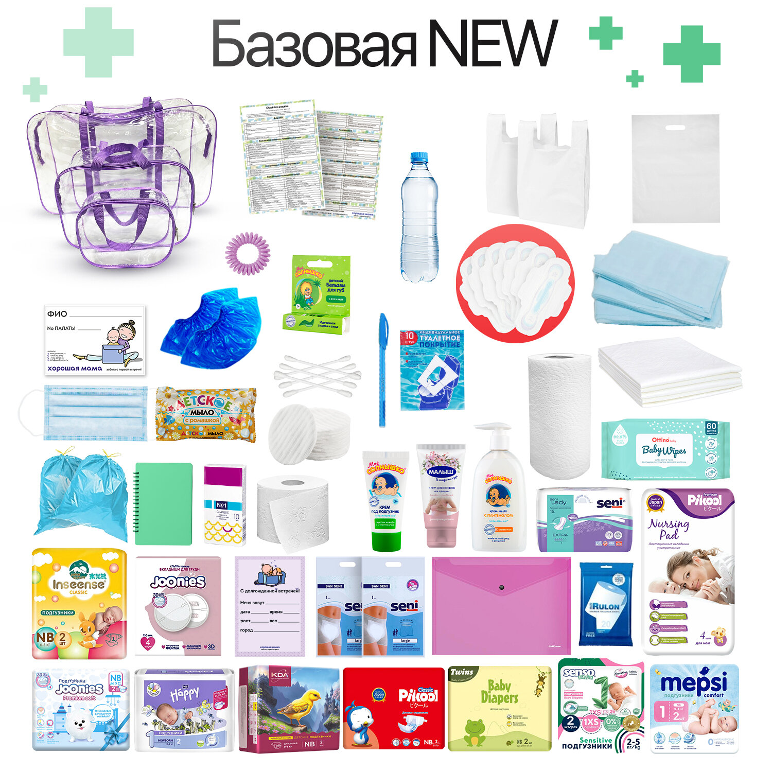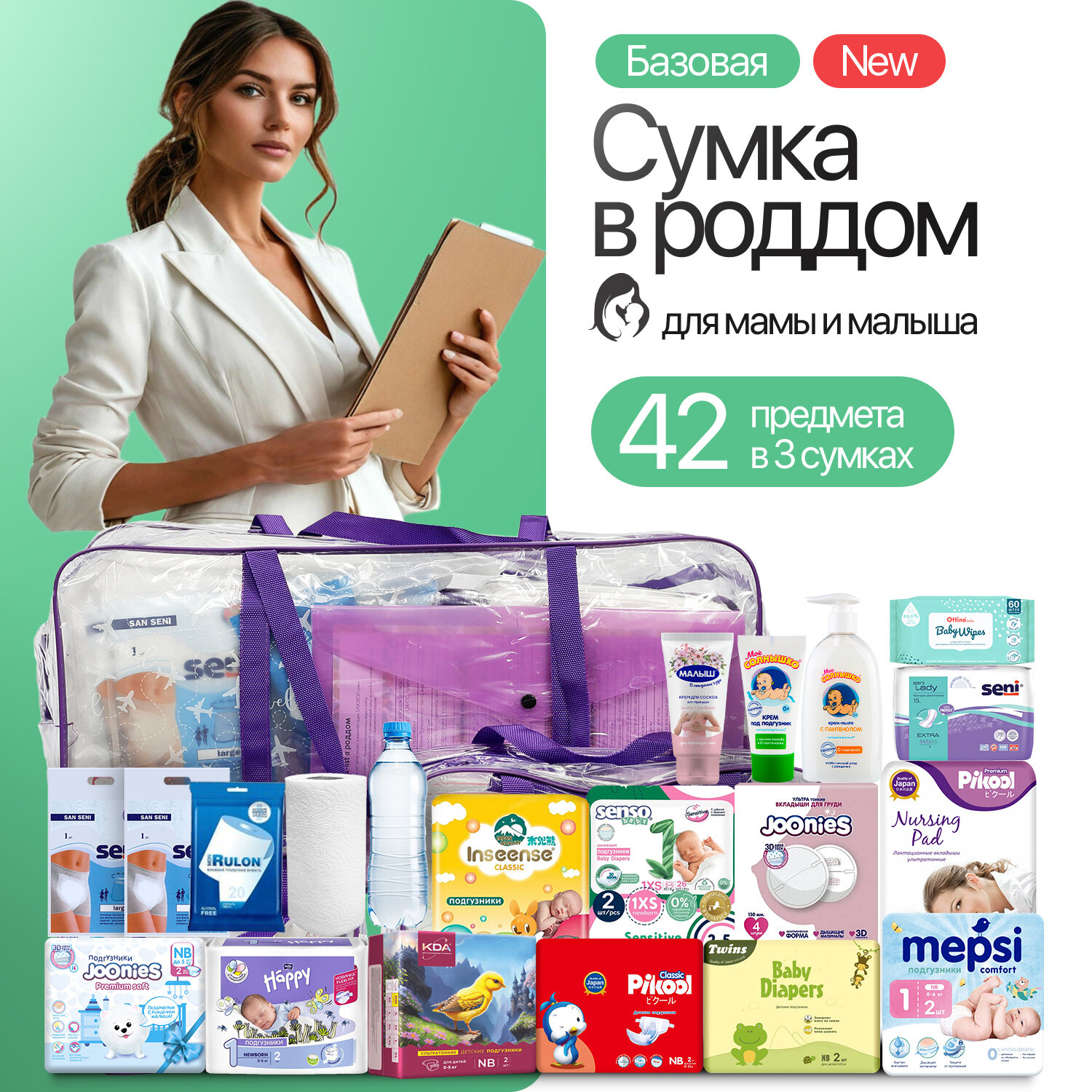Готовая сумка в роддом "Базовая" собранная (42 предмета в 3х сумках) (фиолетовая) интересное: