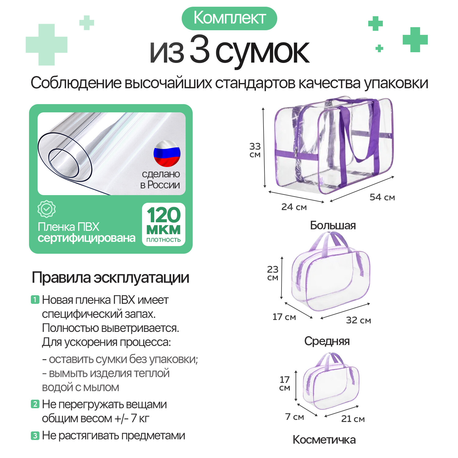 Купить Готовая сумка в роддом "Базовая" собранная (42 предмета в 3х сумках) (фиолетовая)