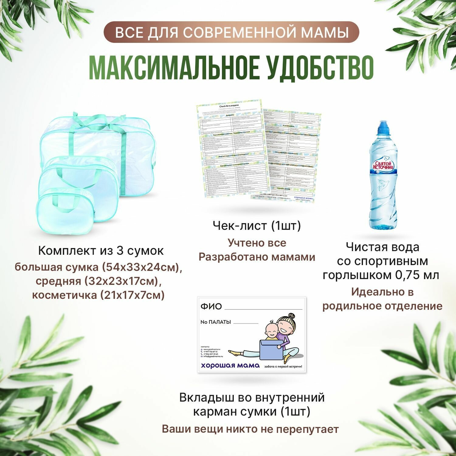 Купить Готовая сумка в роддом для мамы и малыша собранная прозрачная "ЭКО мама" 3 в 1