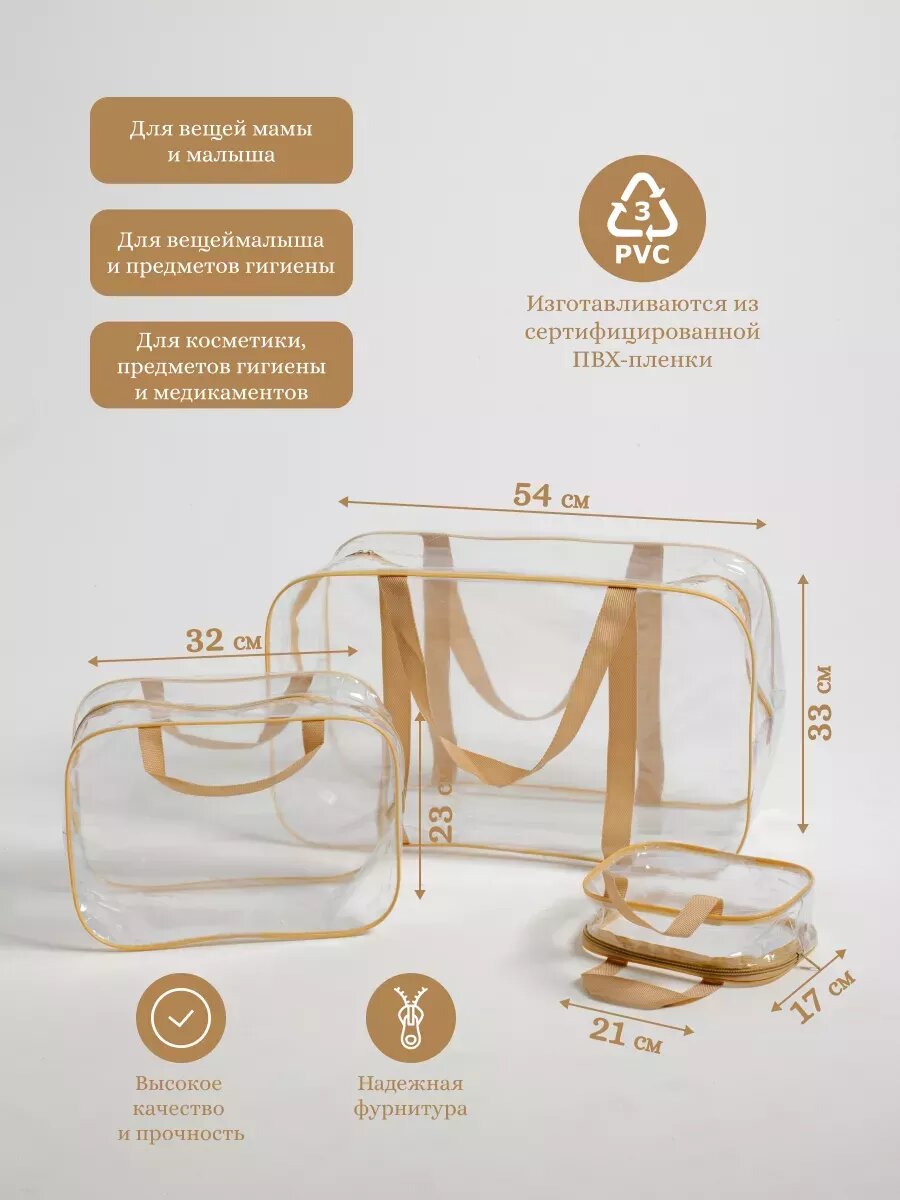 Прозрачные сумки в роддом 3 шт, бренд "Золотой октябрь", цвет прозрачный бежевый интересное: