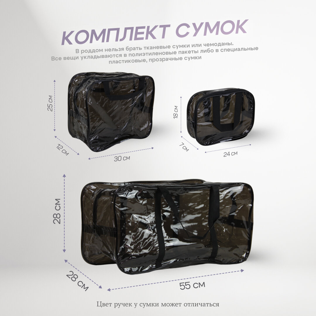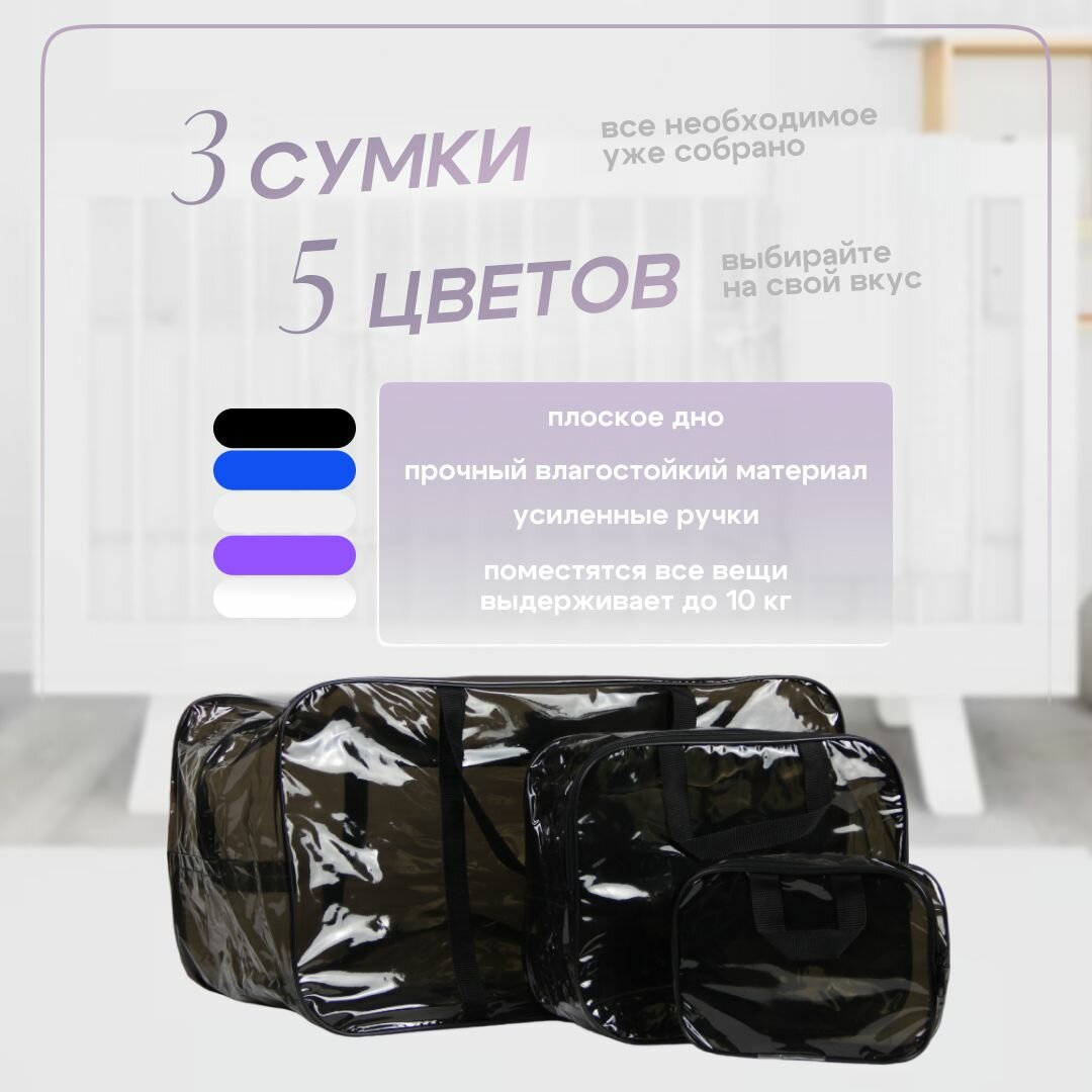 Сумка в роддом готовая для мамы и малыша с наполнением, 50 предметов, прозрачная