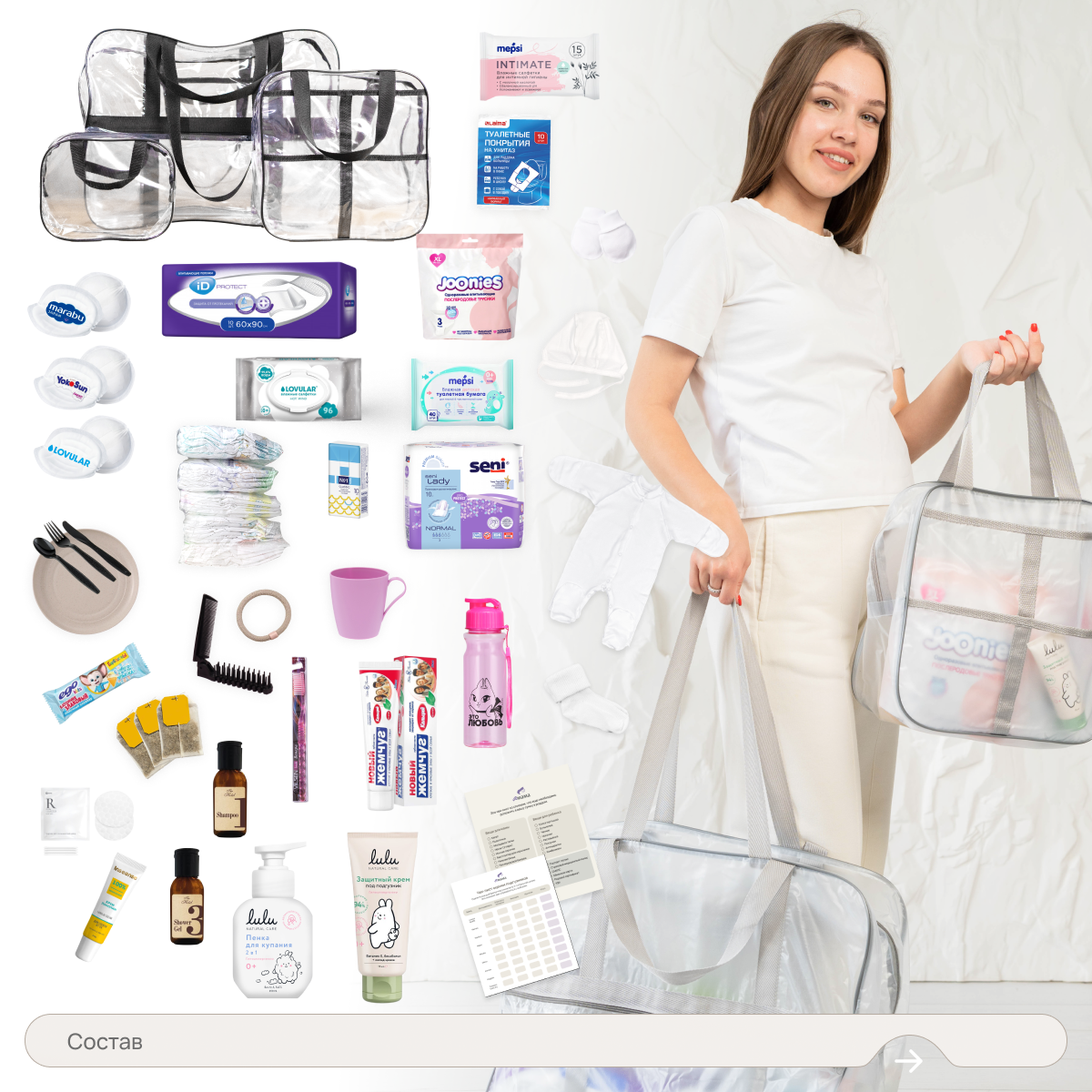 Сумка в роддом готовая для мамы и малыша, 44 предмета, 3 сумки интересное: