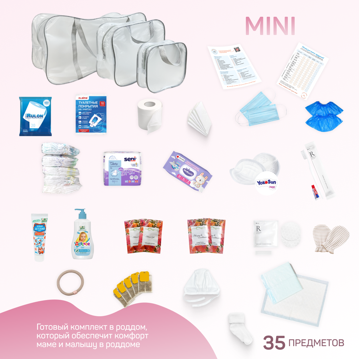 Сумка в роддом готовая для мамы и малыша с наполнением, 35 предметов, прозрачная