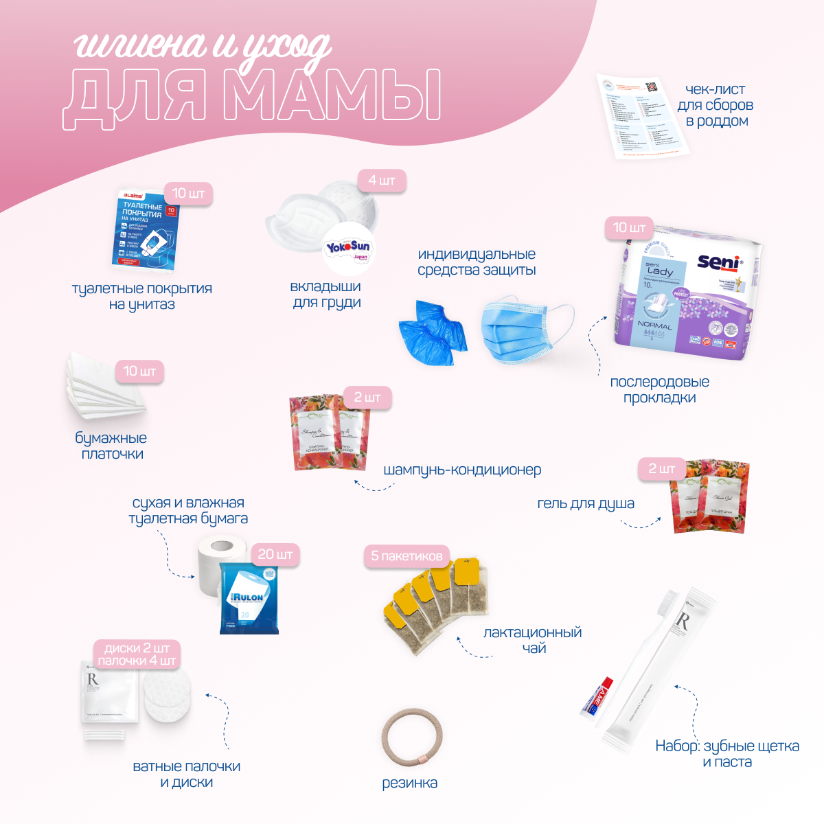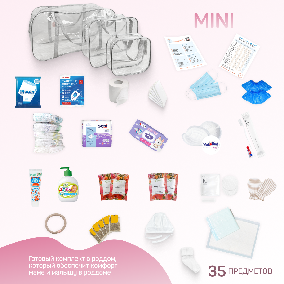Сумка в роддом готовая для мамы и малыша с наполнением, 35 предметов, прозрачная интересное: